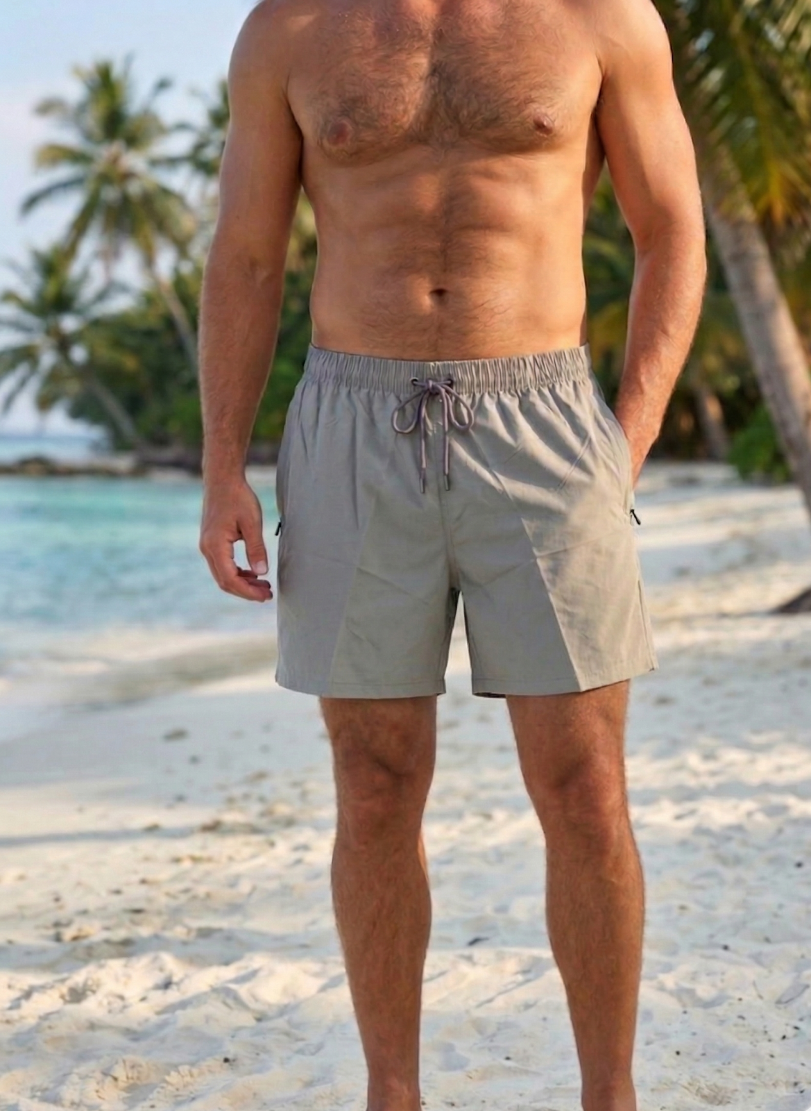 Sort de baie marime mare barbati, tip pantalon scurt, cu buzunare, material care respinge apa Gri M0678