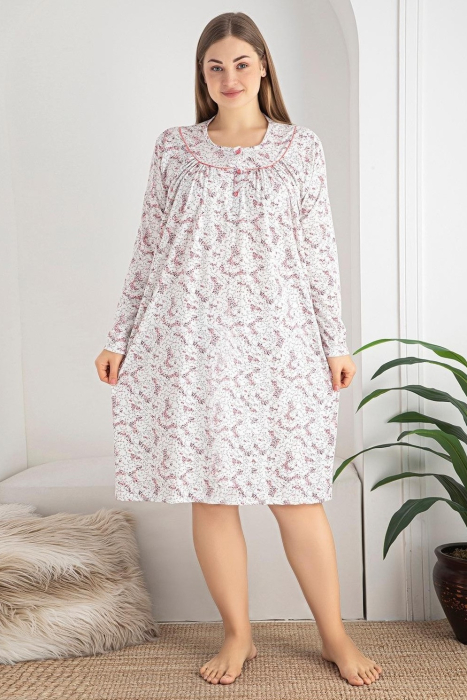 Designul clasic, gri melanj, este pus in valoare de detalii fine de culoare, precum broderia florala delicata din zona pieptului si cusaturile decorative de la gat, mansete si tiv. Croiala lejera si materialul moale, prietenos cu pielea, iti asigura libertate totala de miscare pe parcursul intregii nopti.