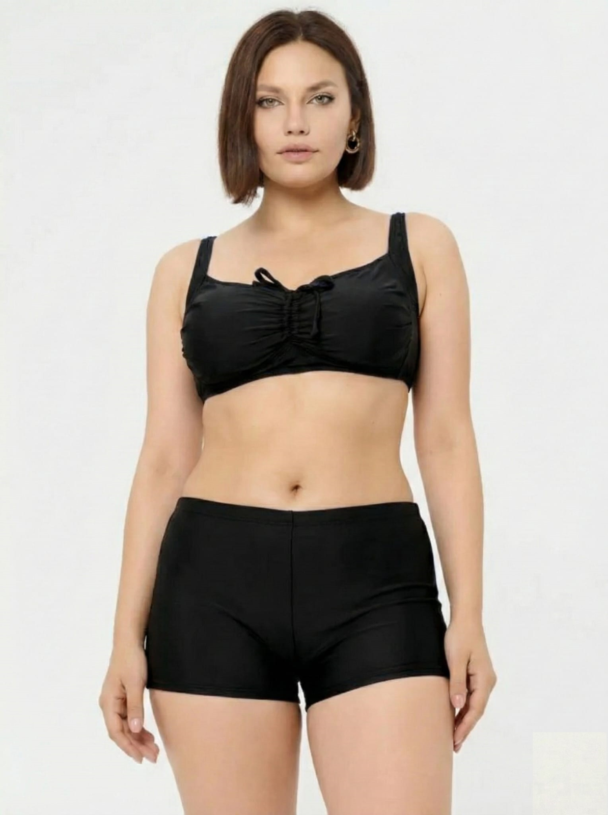 Costum baie dama 2 piese, marime mare, slipi tip pantaloni scurti, negru 22098