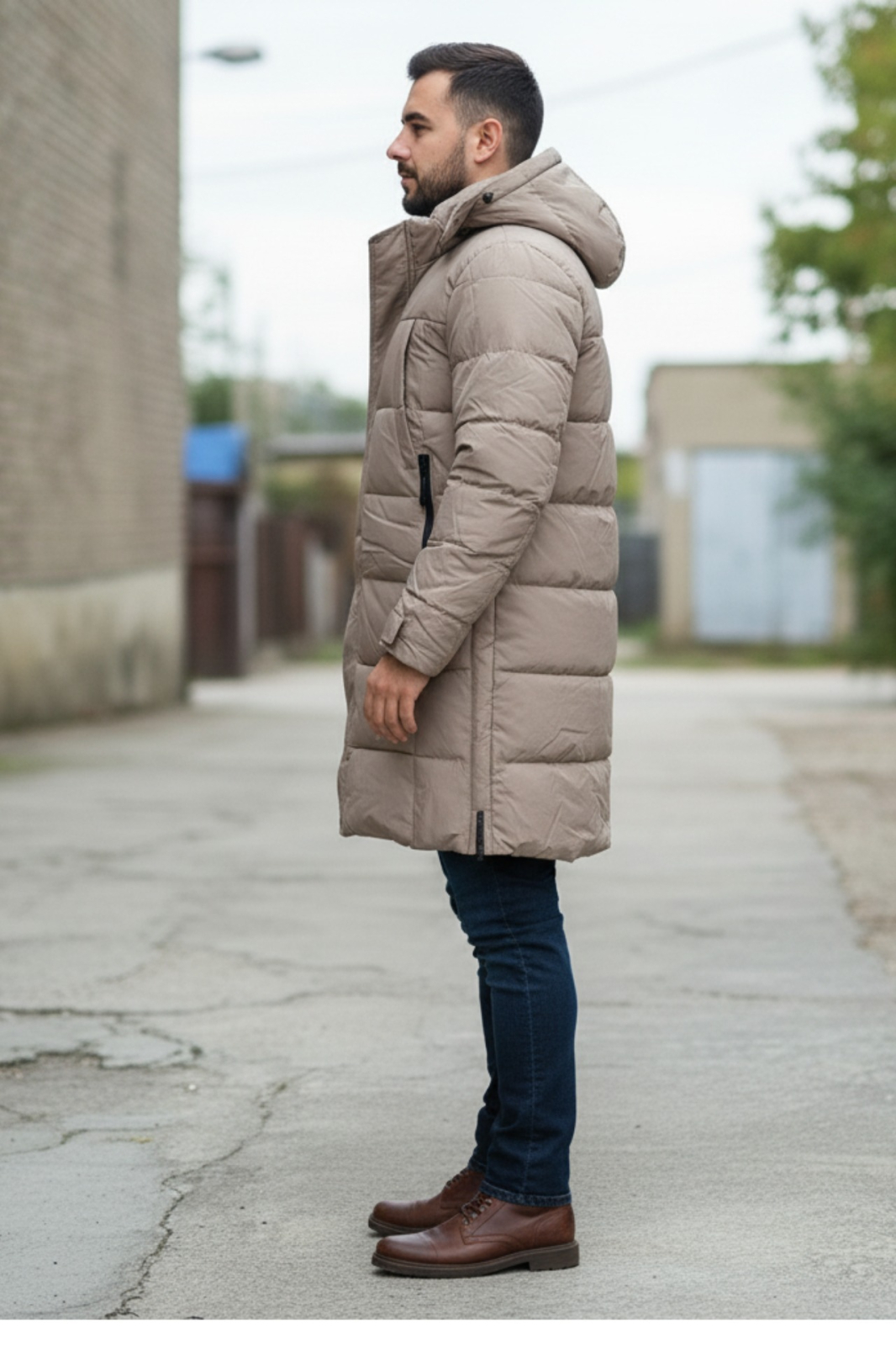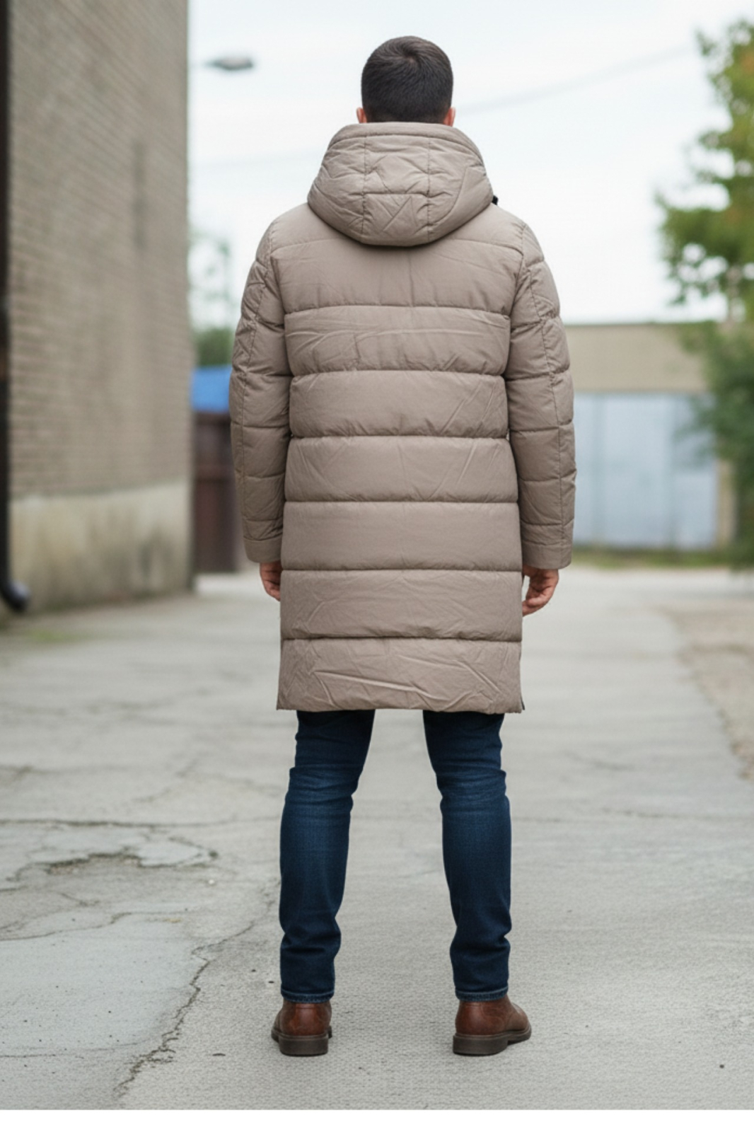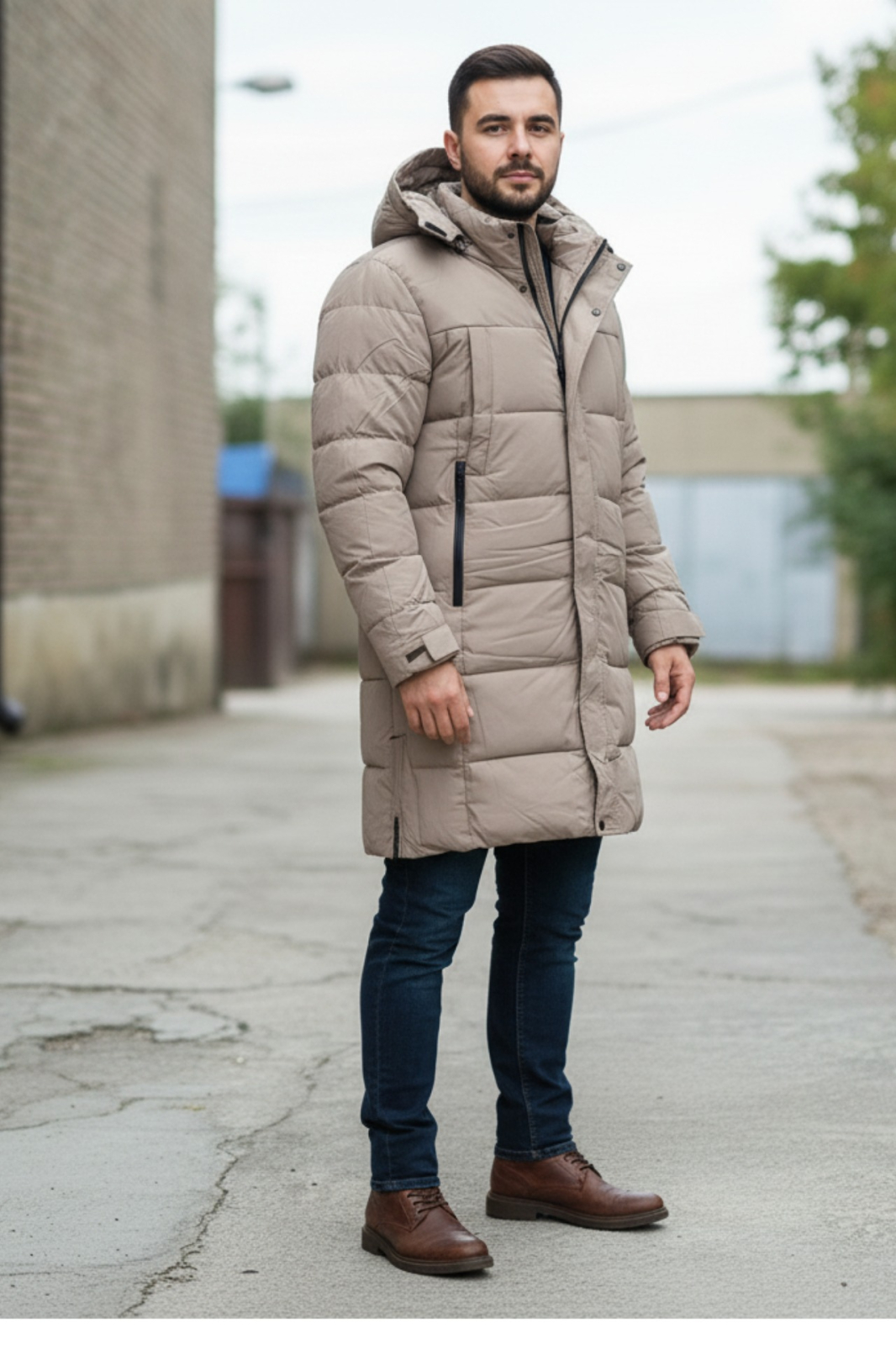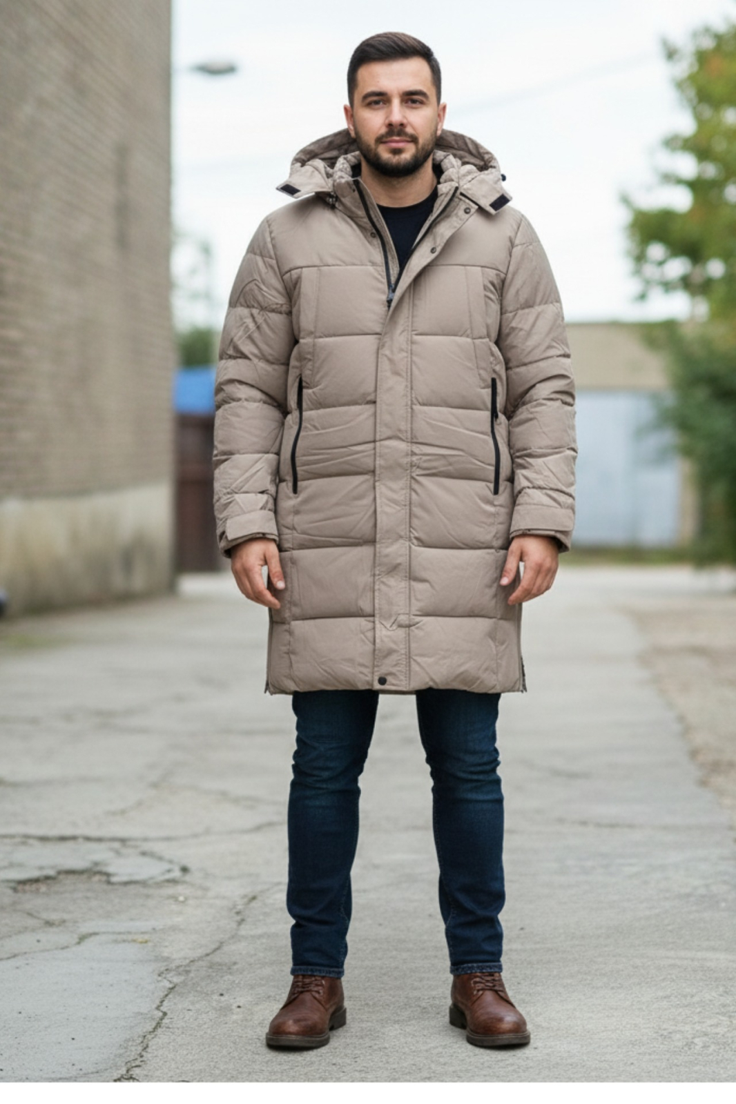 Geaca Barbati groasa de Iarna Lunga Cu Gluga Detasabila 2603 bej