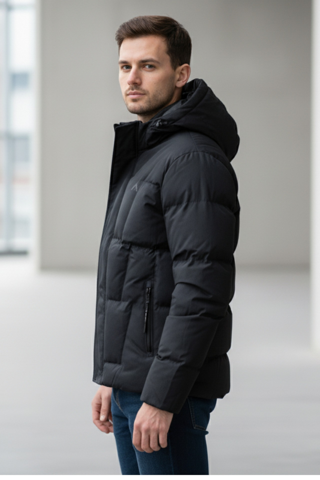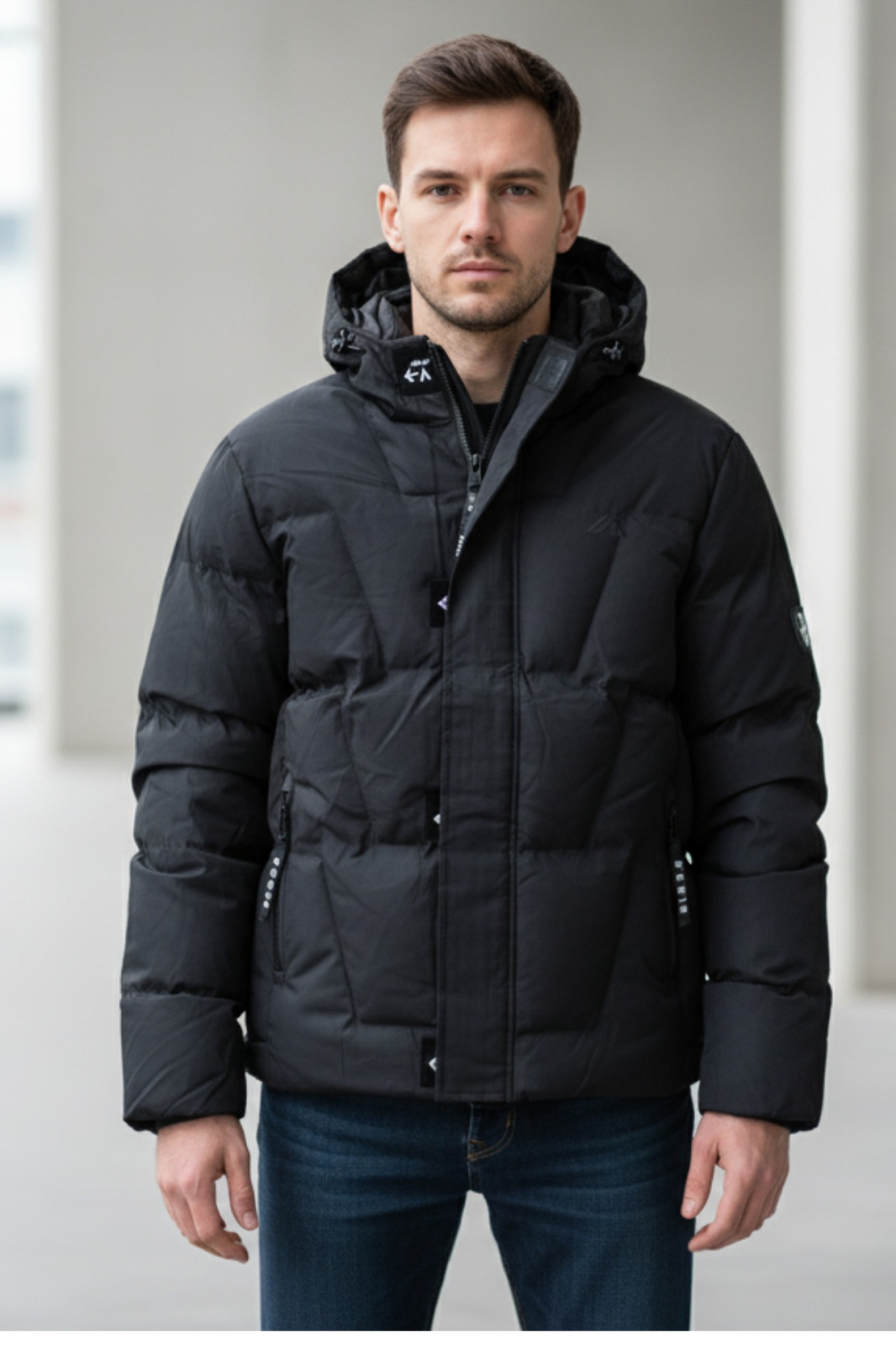 Geaca Barbati Iarna Neagra cu Gluga 8269