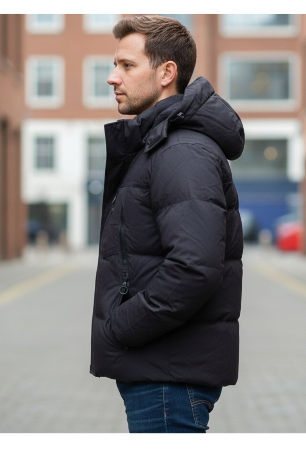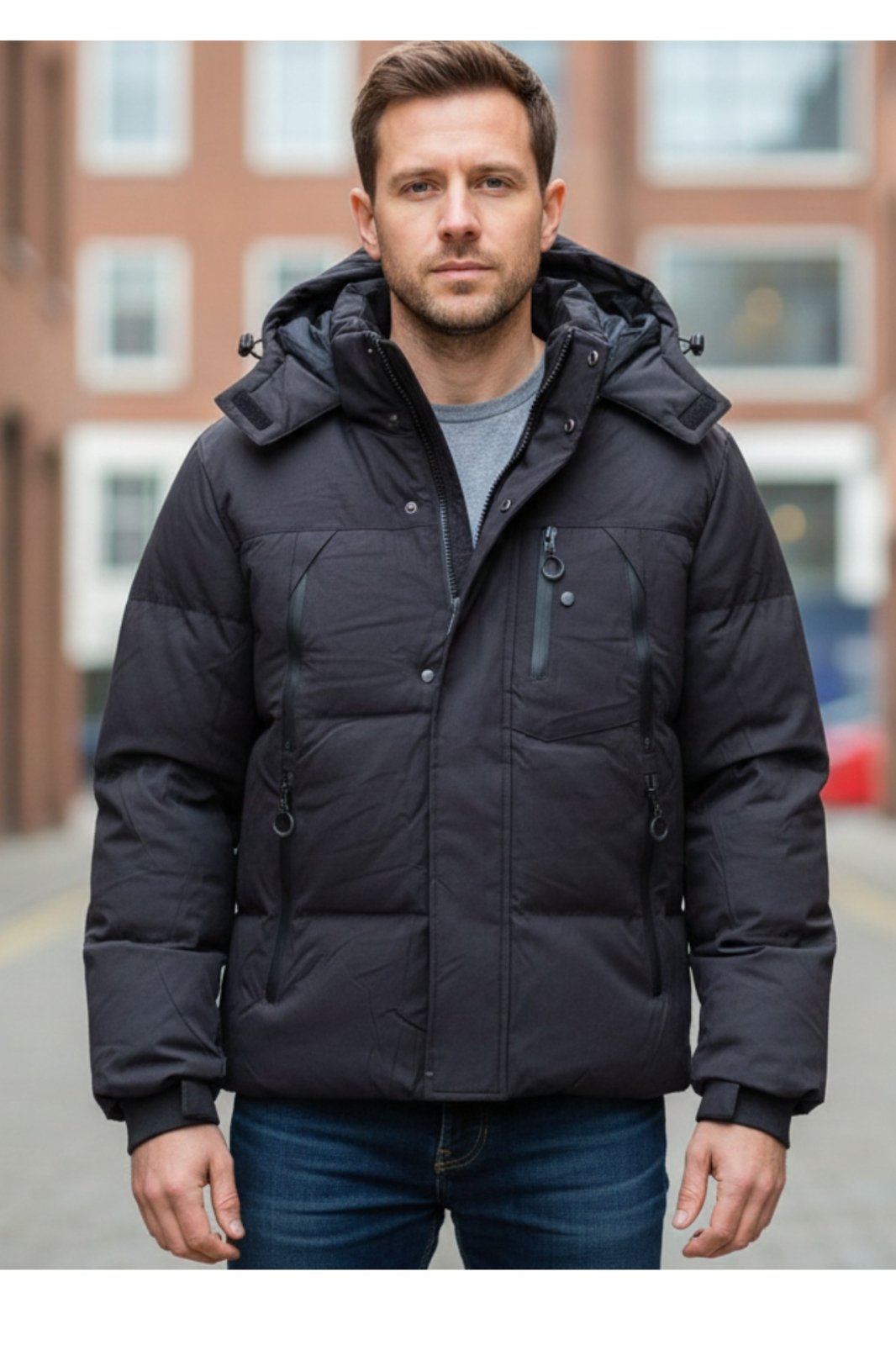 Geaca Barbati Iarna Groasa cu Gluga Detasabila negru 52036-1