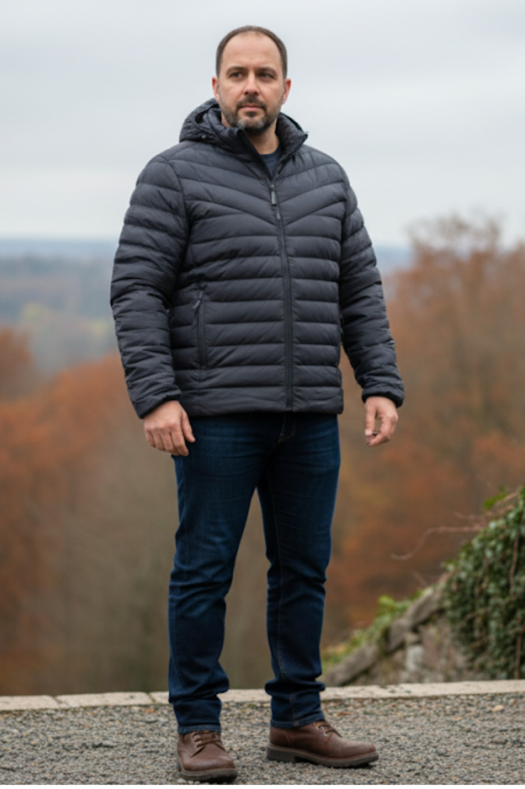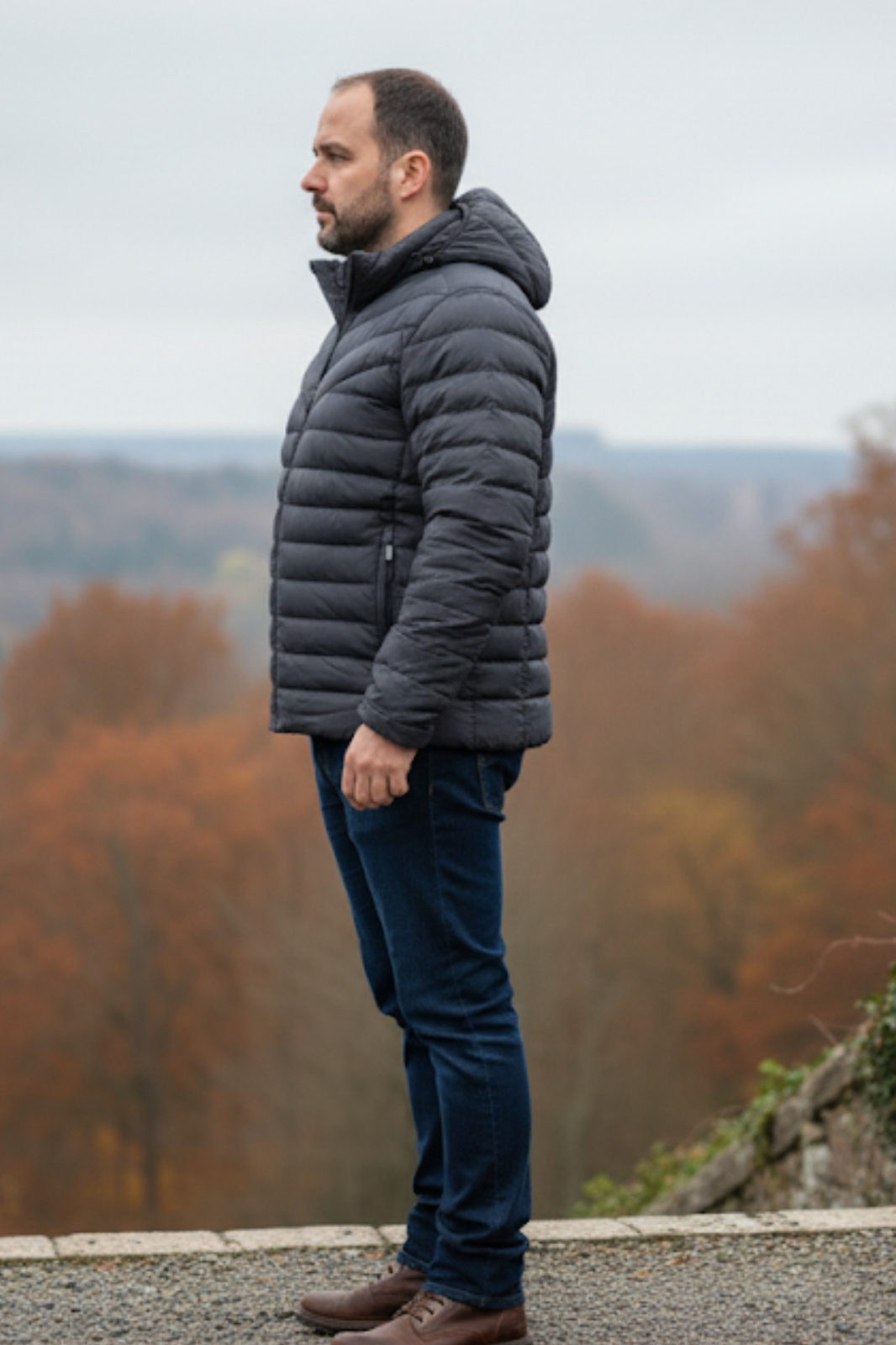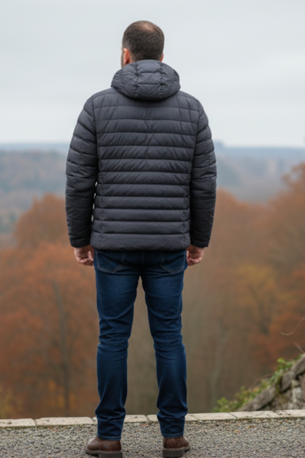 O geaca de fas pentru barbati, perfecta pentru sezoanele de tranzitie. Designul matlasat modern si culoarea versatila o fac usor de asortat la orice tinuta casual sau sport.