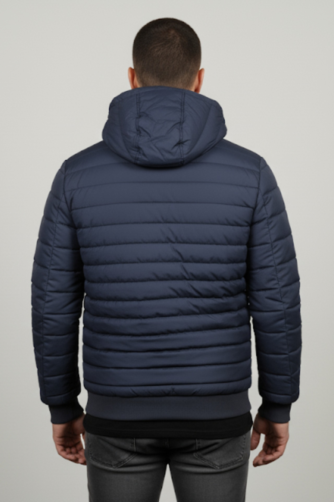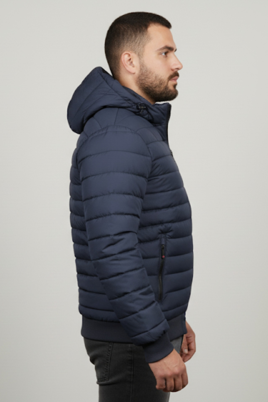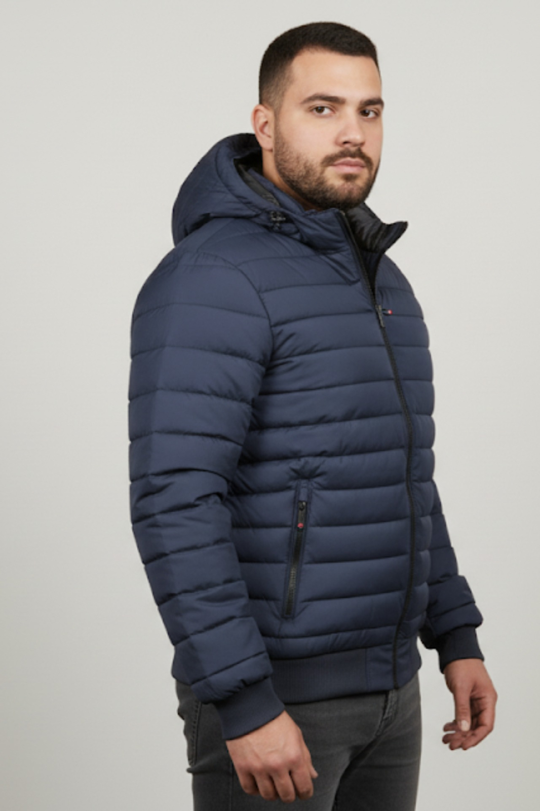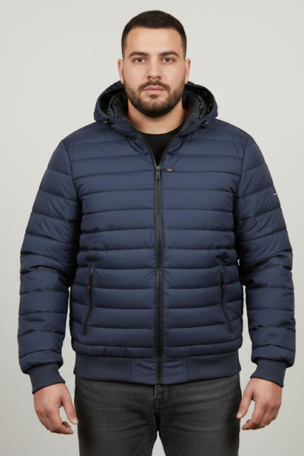 Geaca Matlasata pentru Barbati marime mare, cu gluga detasabila, buzunare cu fermoar bleumarin D88915