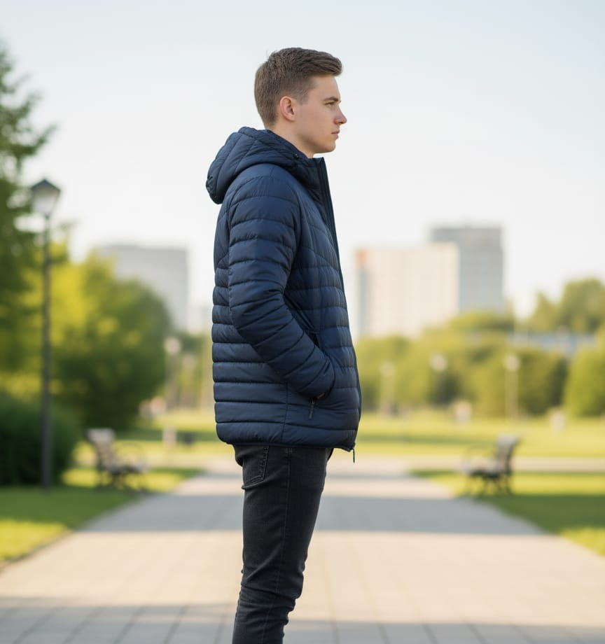 O geaca de fas pentru barbati, perfecta pentru sezoanele de tranzitie. Designul matlasat modern si culoarea versatila o fac usor de asortat la orice tinuta casual sau sport.