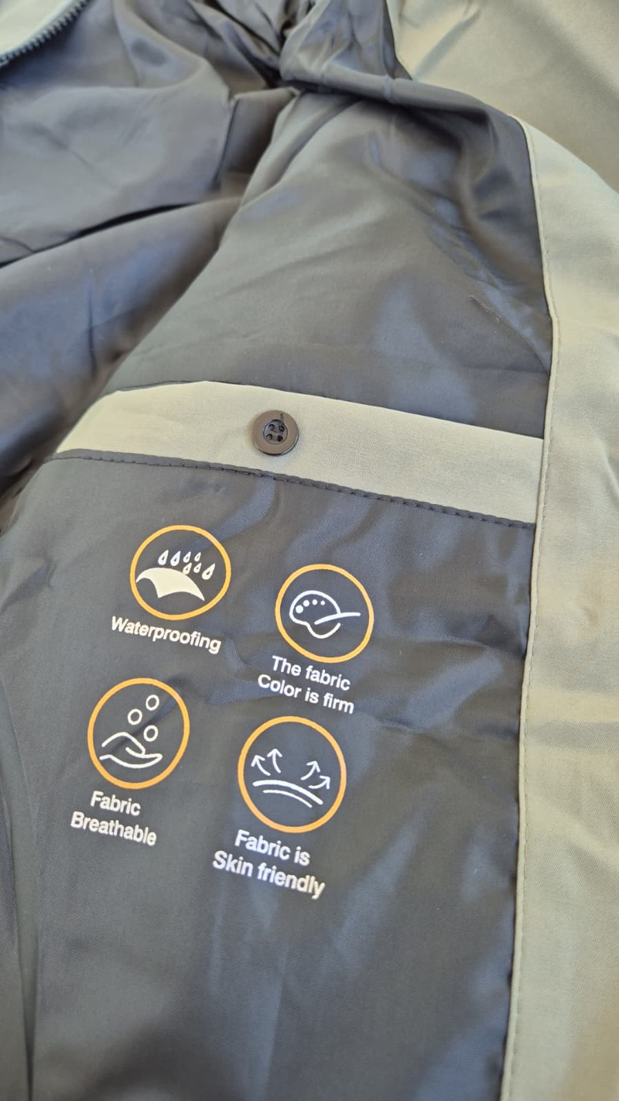 Confort si Potrivire: Mansetele si talia elastice (striate) asigura o potrivire perfecta pe corp, mentinand caldura si blocand vantul.