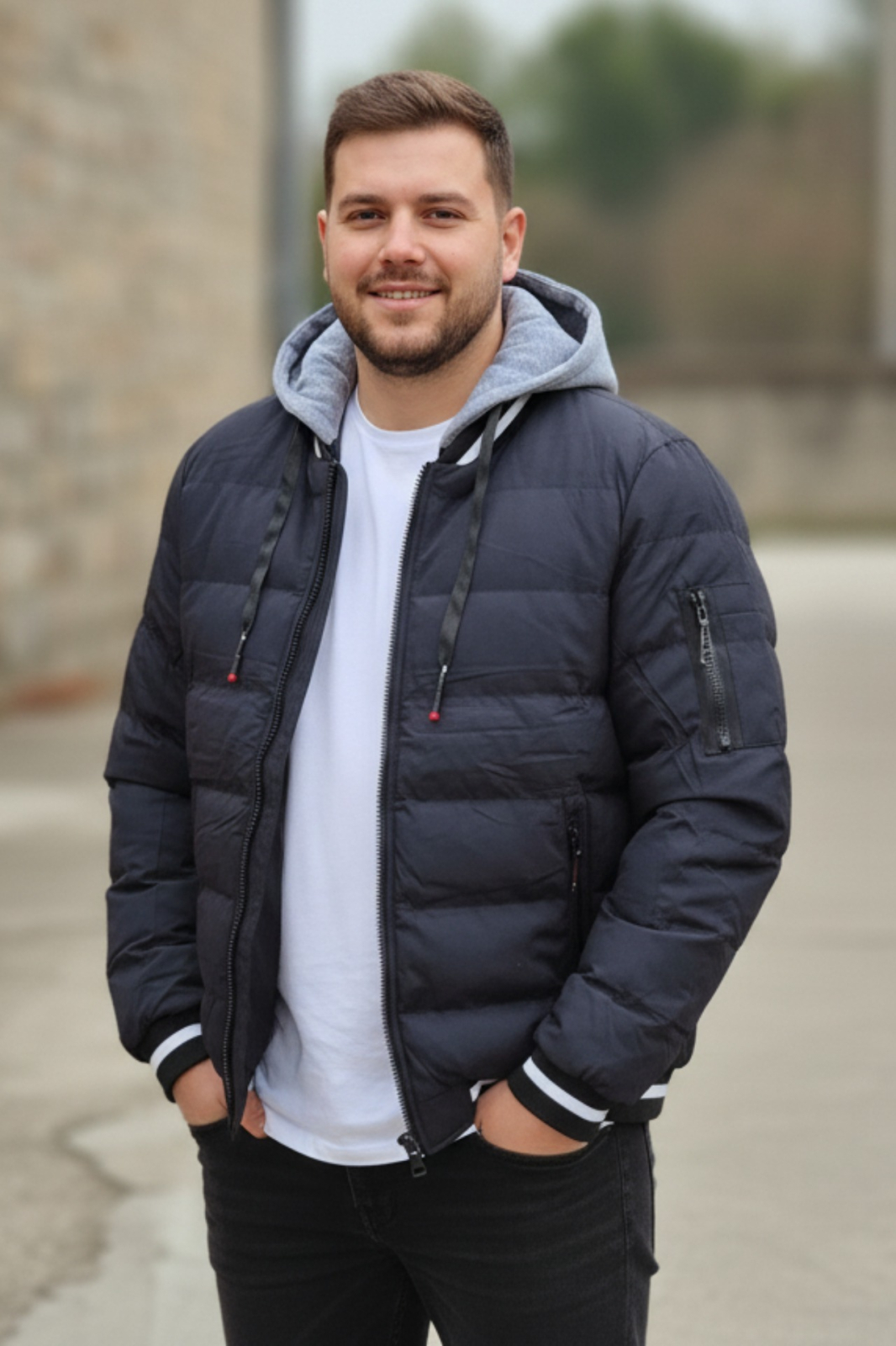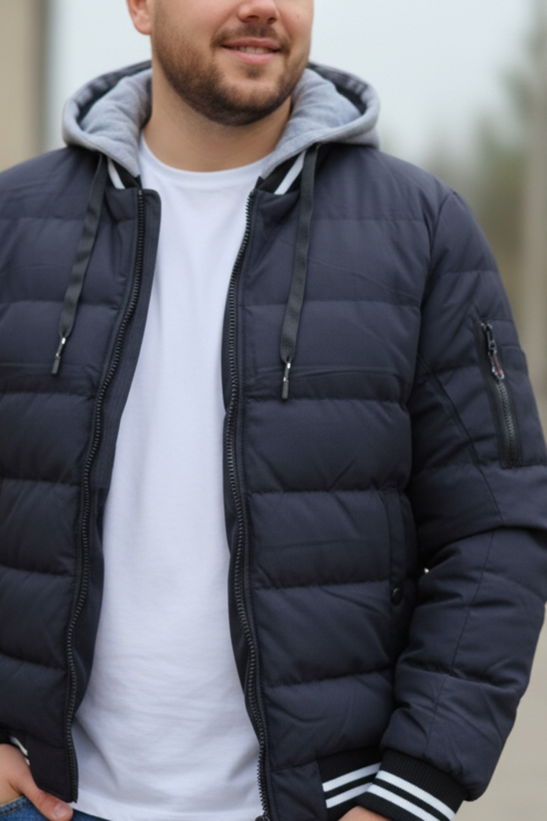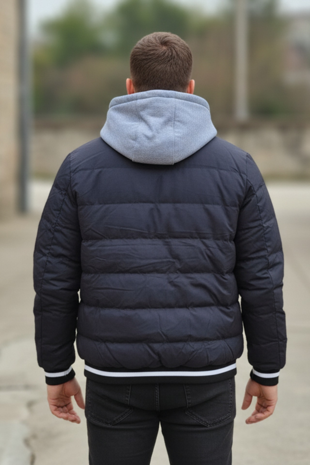 Geca Barbati Casual de Iarna cu Gluga detasabila 7457-1 bleumarin