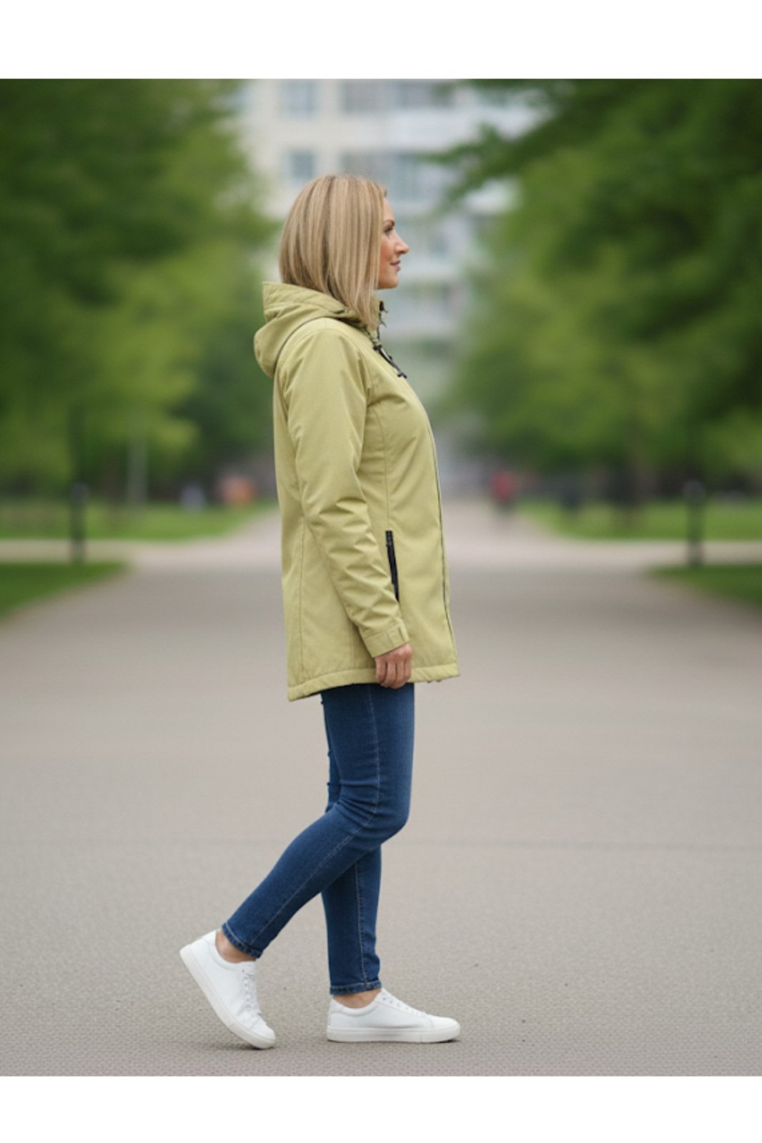 Geaca dama cu gluga detasabila, buzunare, inchidere fermoar, lemon 8020-4