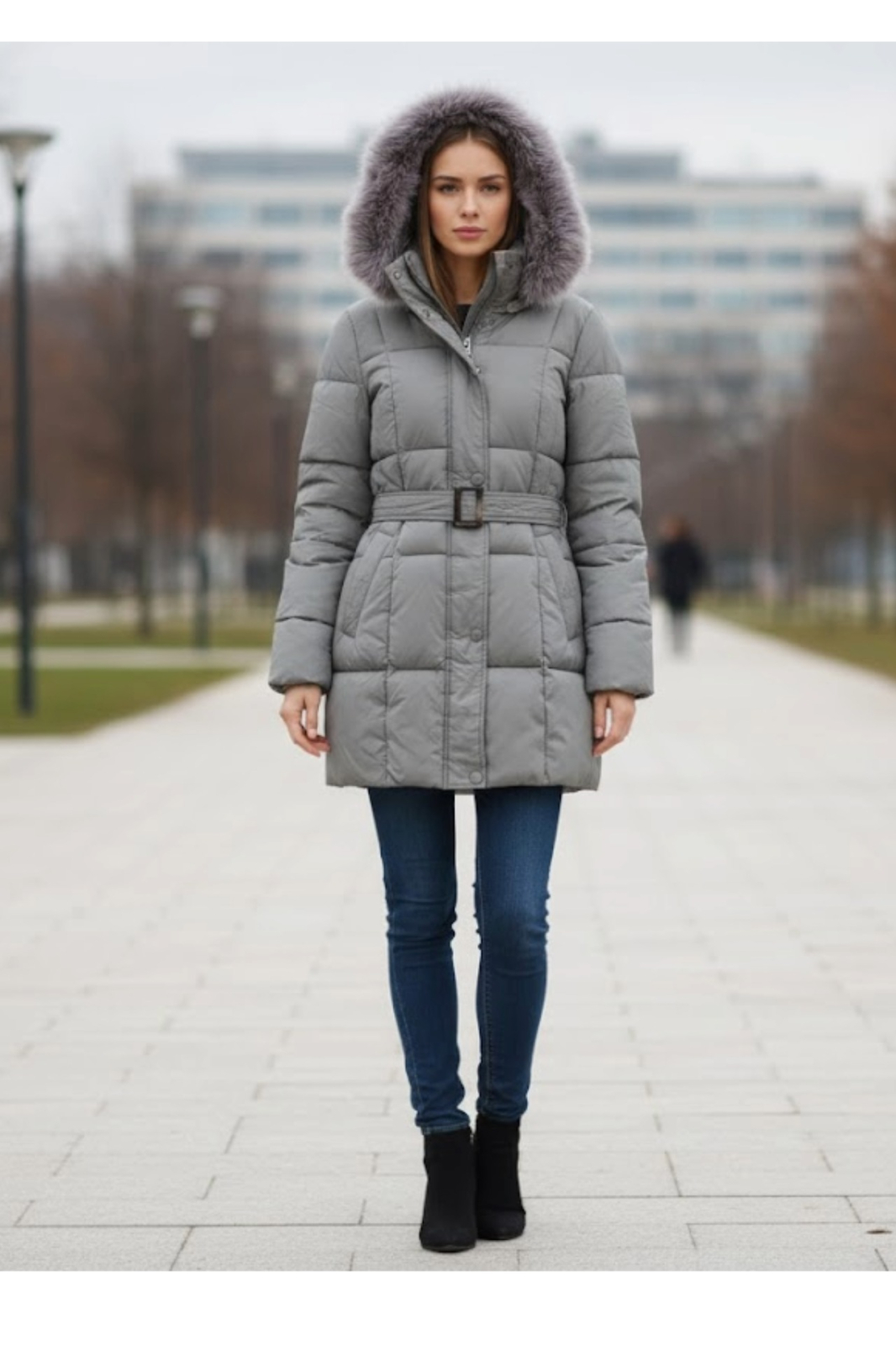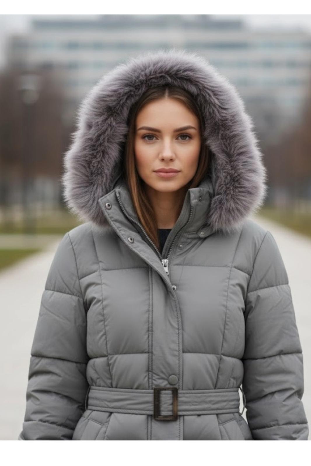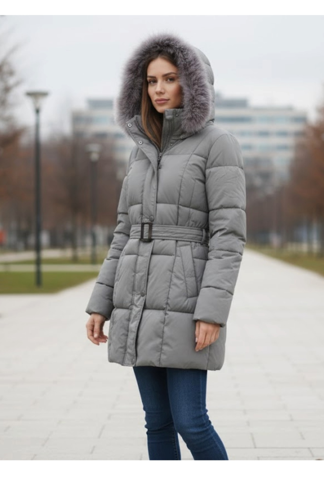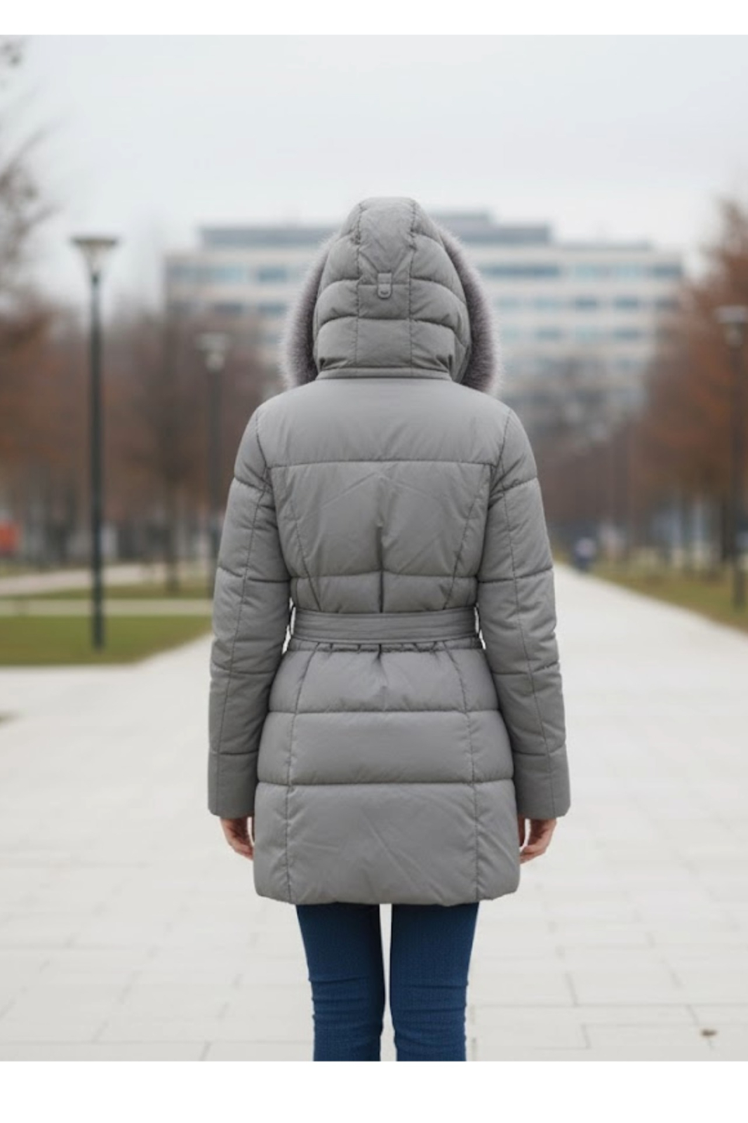 Geaca Dama Groasa de Iarna cu Gluga si Cordon 210 gri