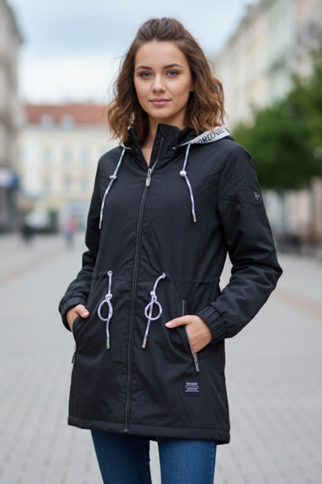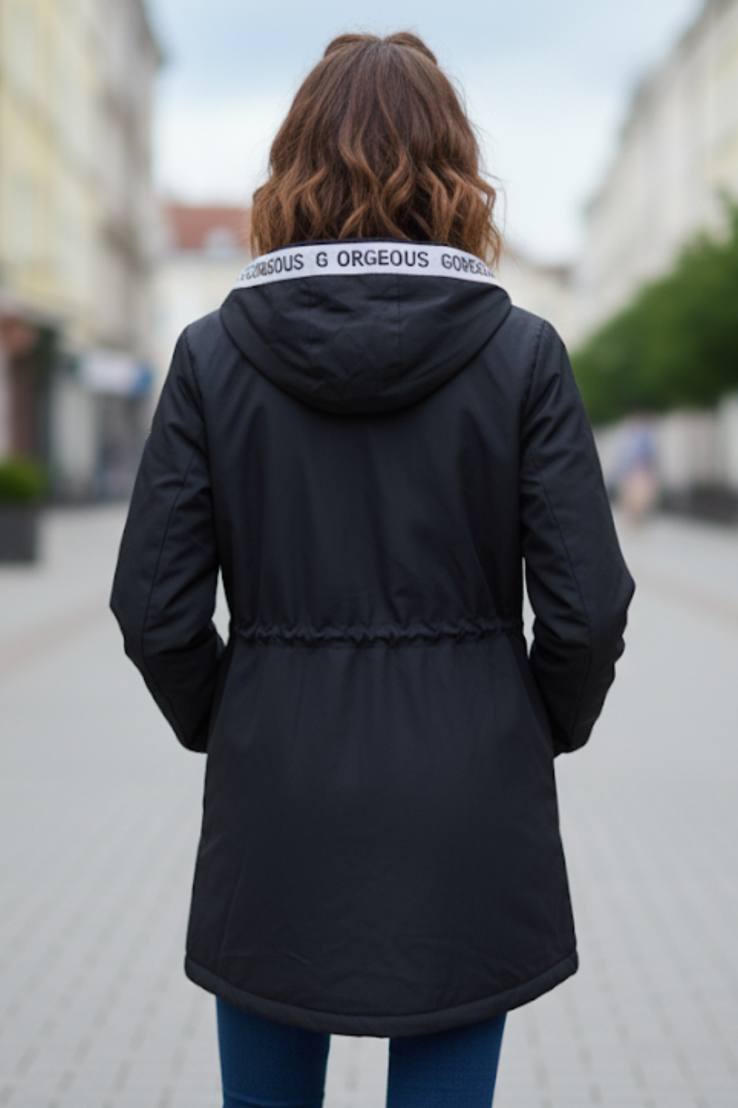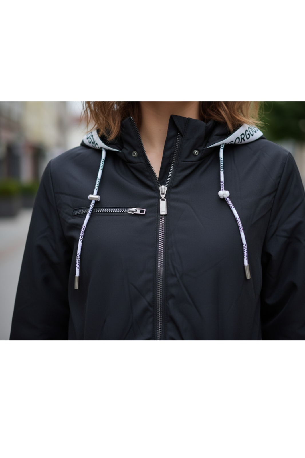 Geaca dama cu gluga detasabila, buzunare cu fermoar negru 8001-1