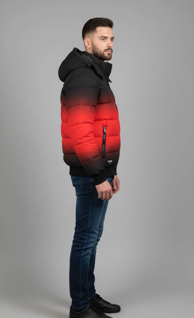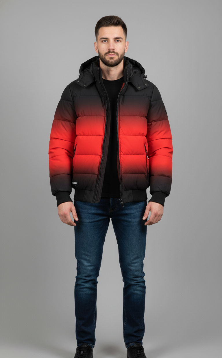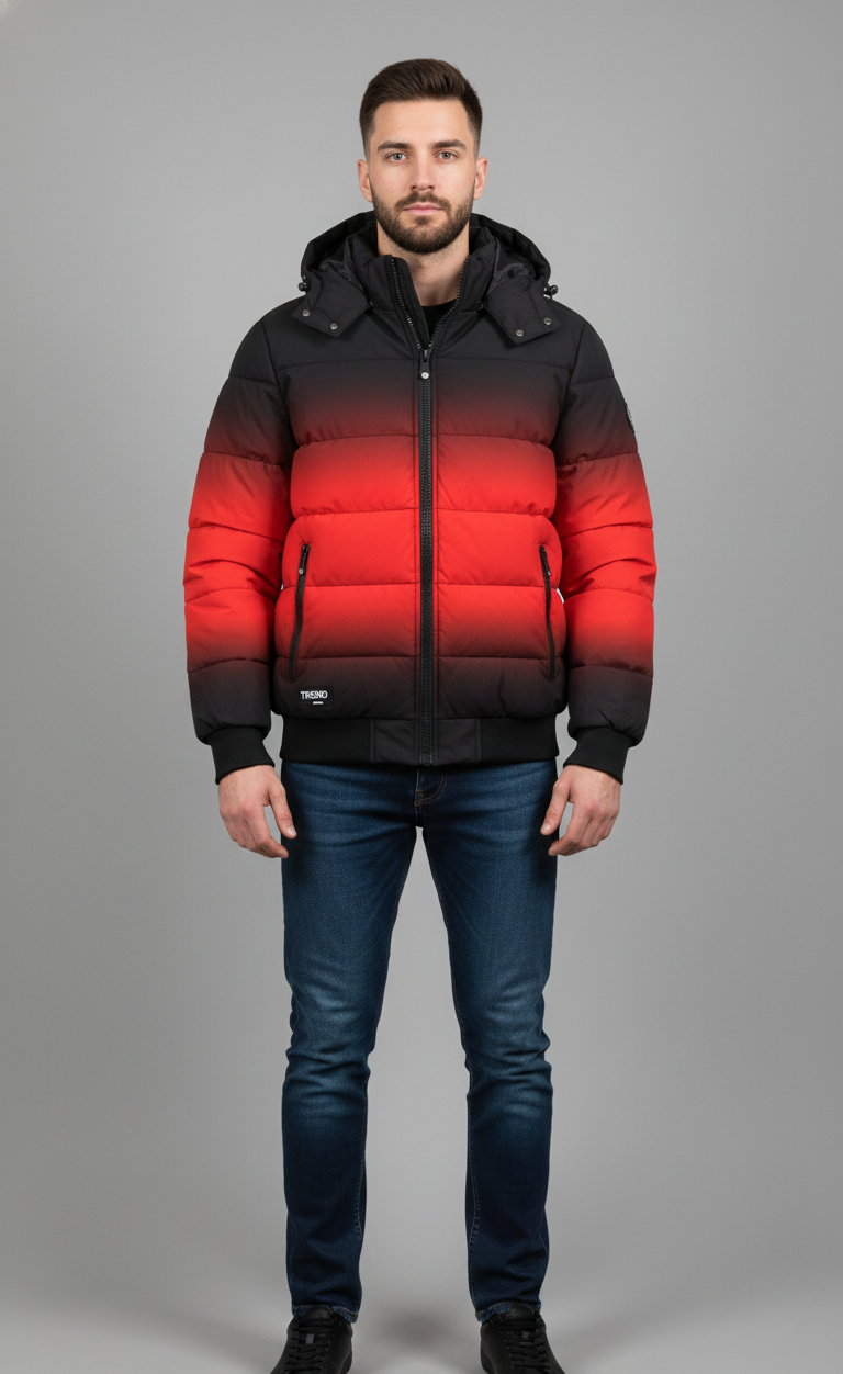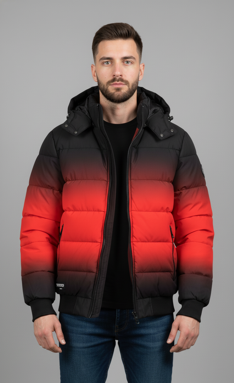 Descopera noua geaca de iarna pentru barbati, un mix perfect de stil si functionalitate! Cu un design modern in gradient de rosu si negru, aceasta geaca groasa din fas te va mentine cald si confortabil in zilele reci.