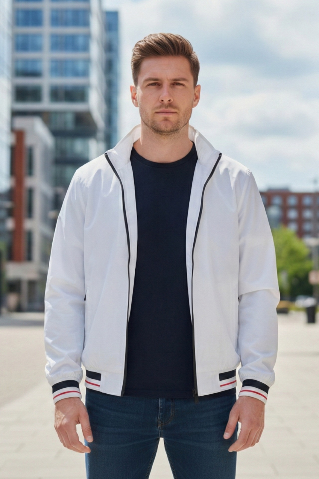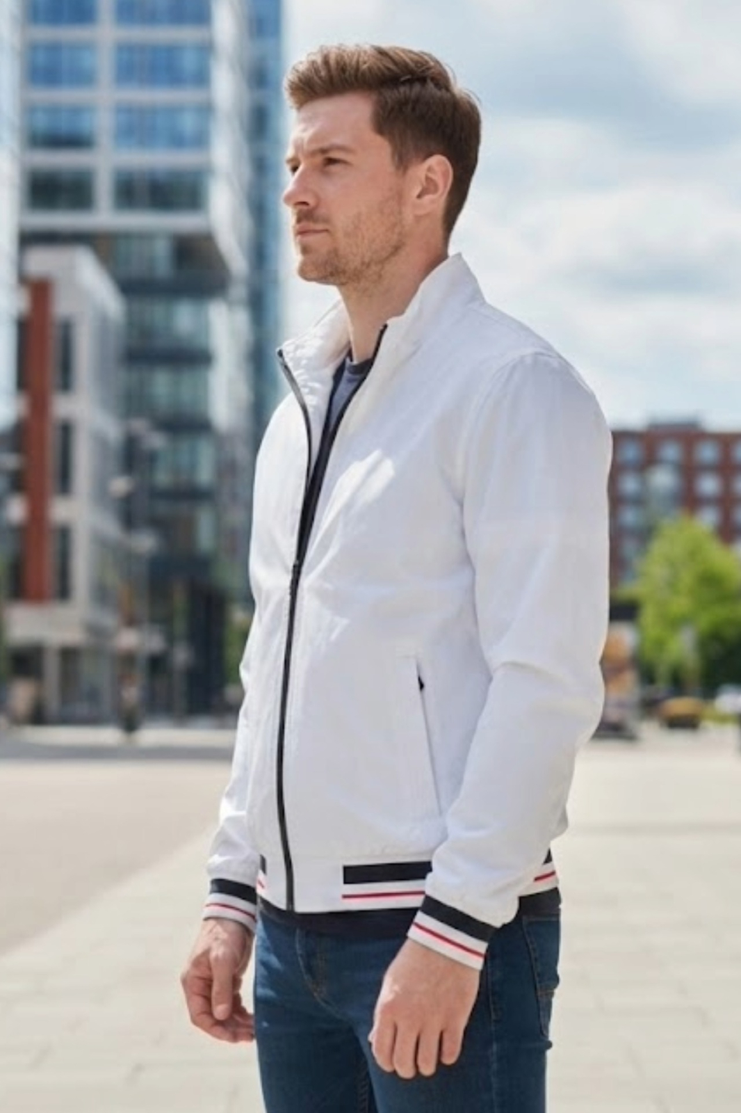 Materialul usor si rezistent ofera protectie impotriva vantului, fara a supraincalzi, fiind perfecta pentru purtarea zilnica peste un tricou sau o camasa casual. Detaliile atent lucrate, precum fermoarul negru contrastant si mansetele elastice cu dungi, ofera un aer tineresc si dinamic.