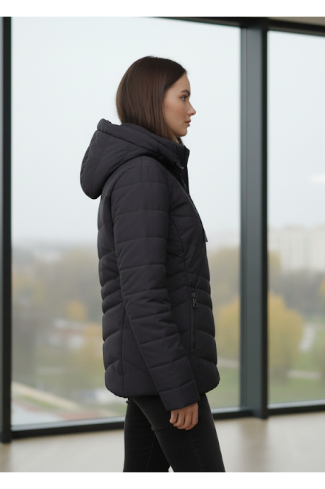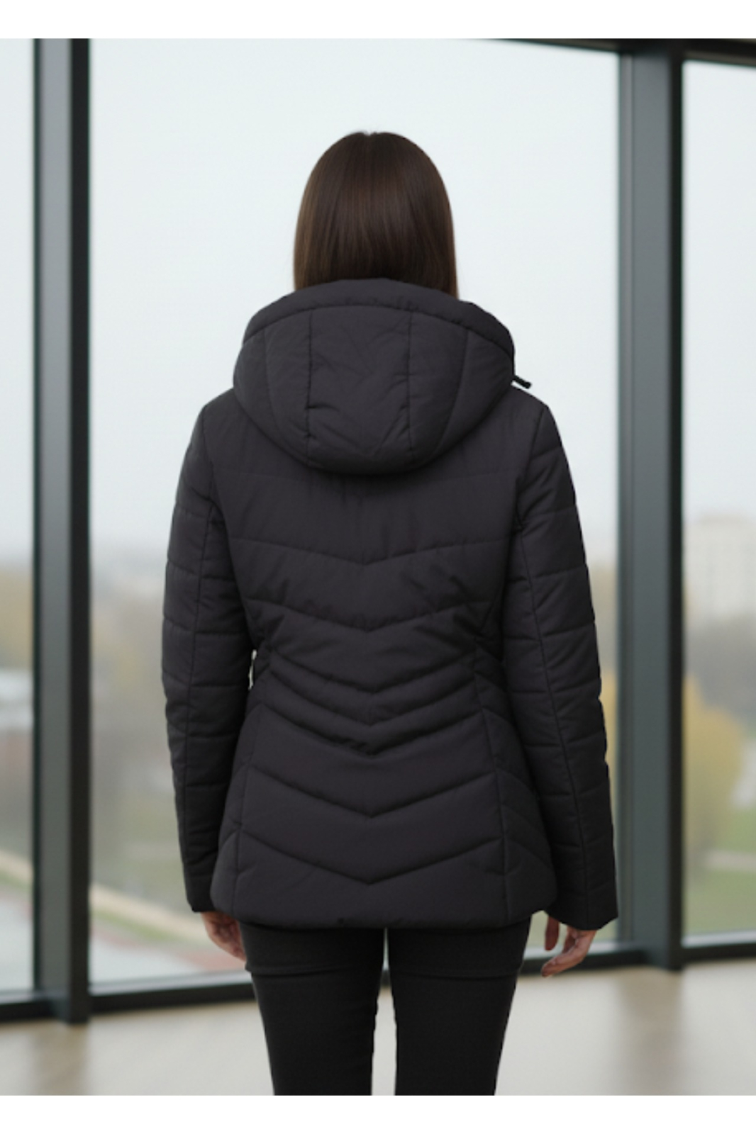 Geaca dama cu gluga detasabila, buzunare, inchidere fermoar, negru 7819