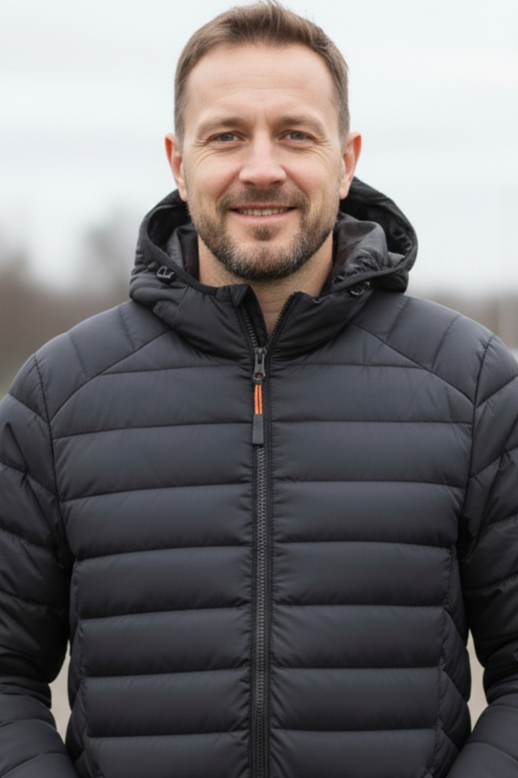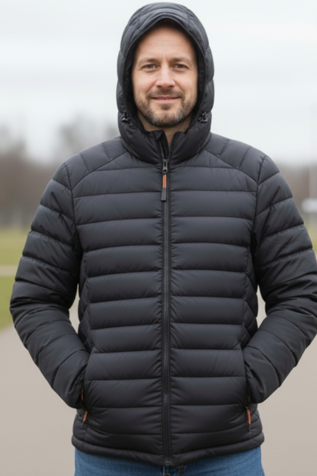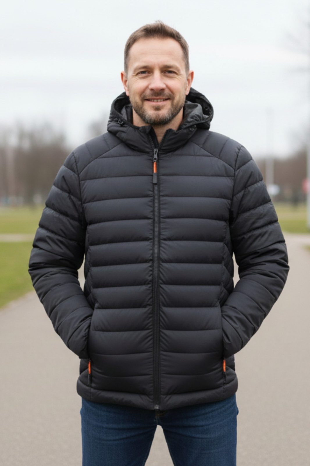 O geaca de fas pentru barbati, perfecta pentru sezoanele de tranzitie. Designul matlasat modern si culoarea versatila o fac usor de asortat la orice tinuta casual sau sport.