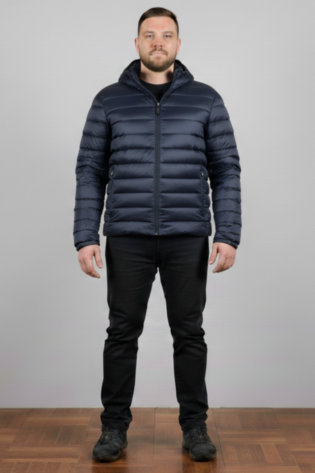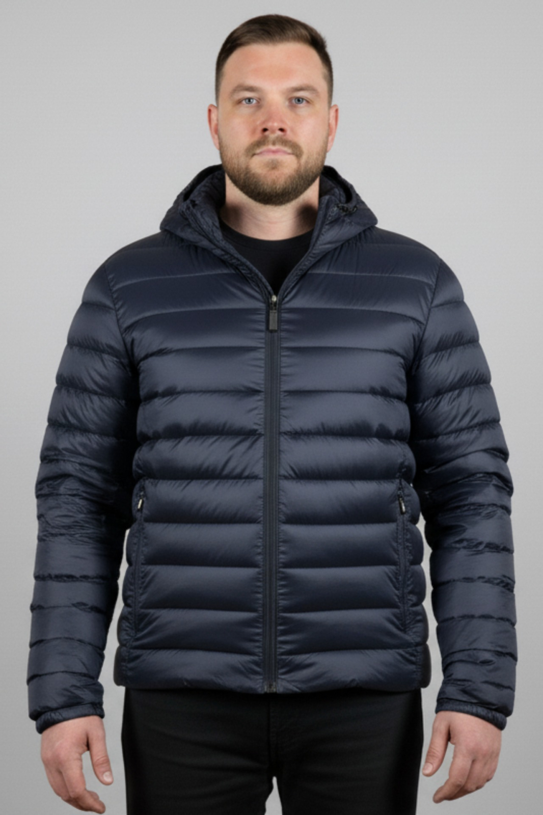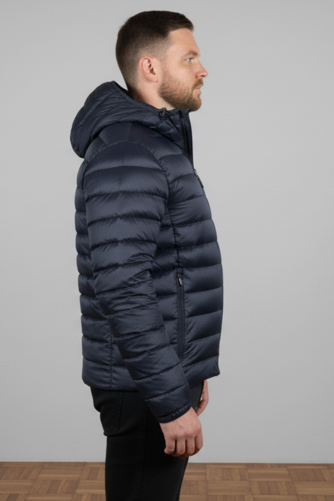 Geaca fas Matlasata Barbati marime mare, cu gluga detasabila, buzunare cu fermoar bleumarin F07