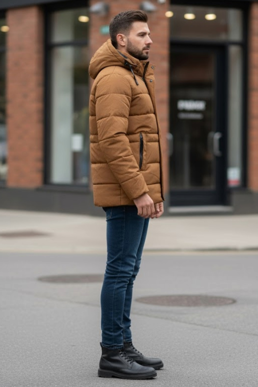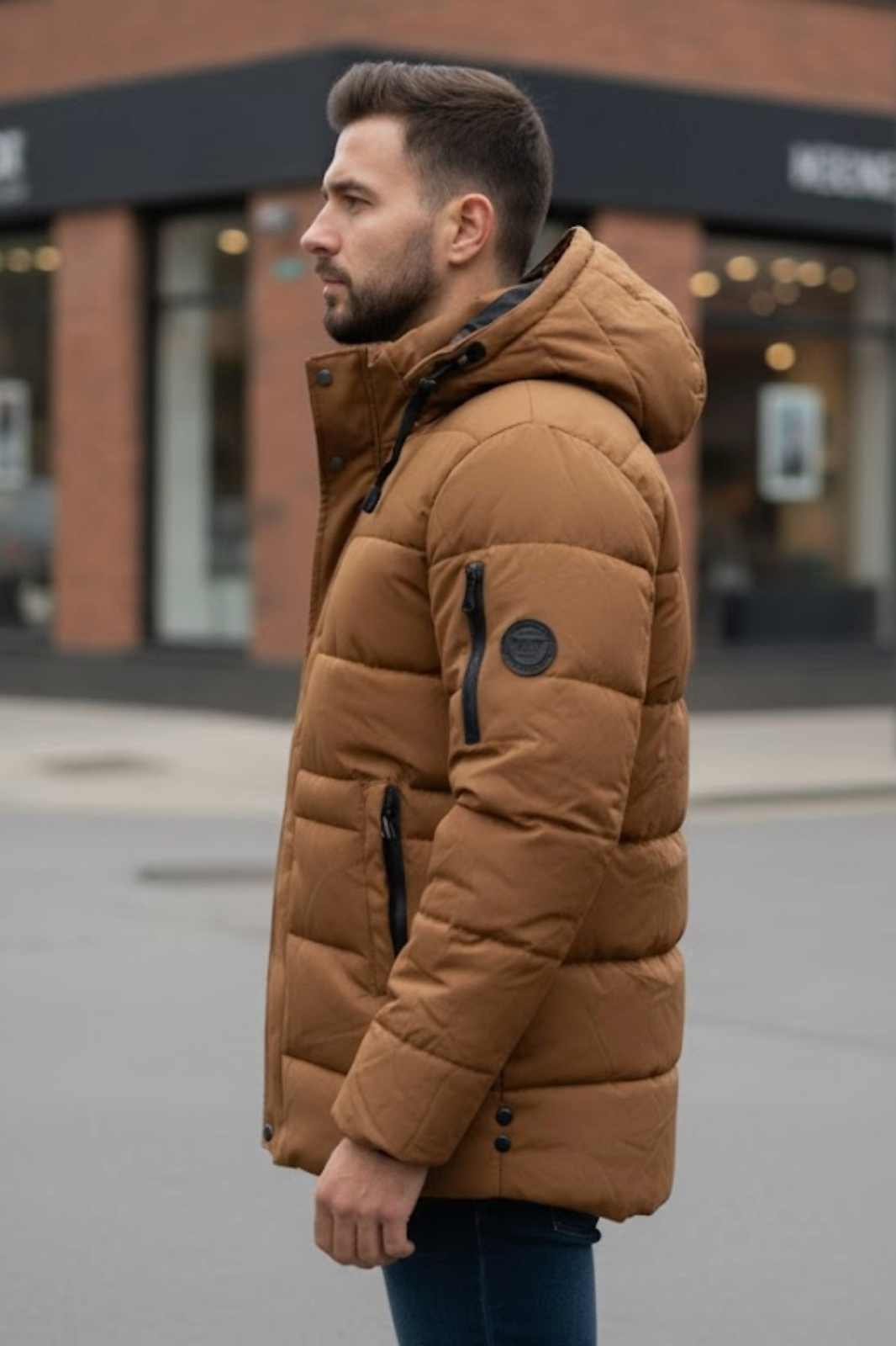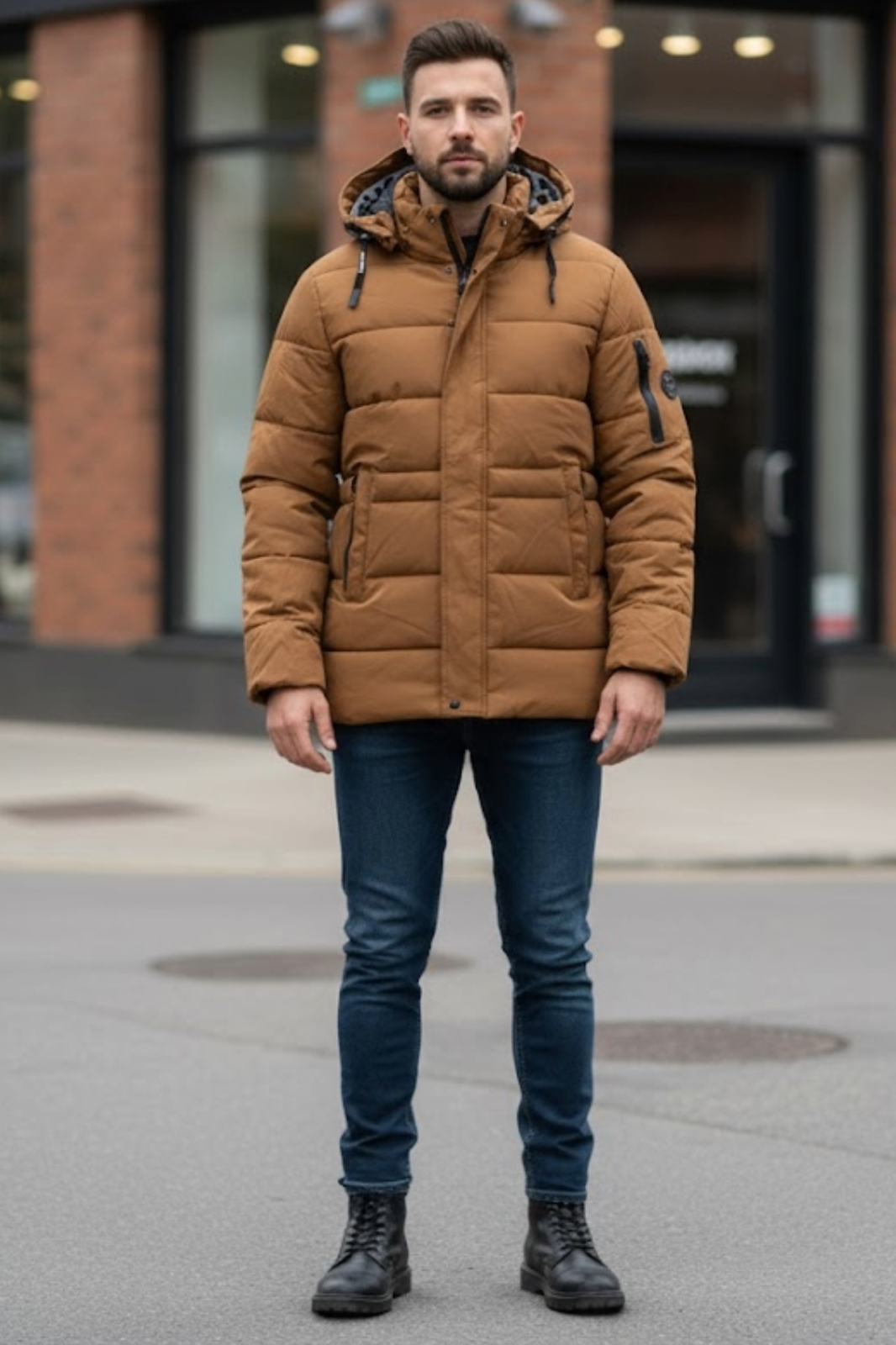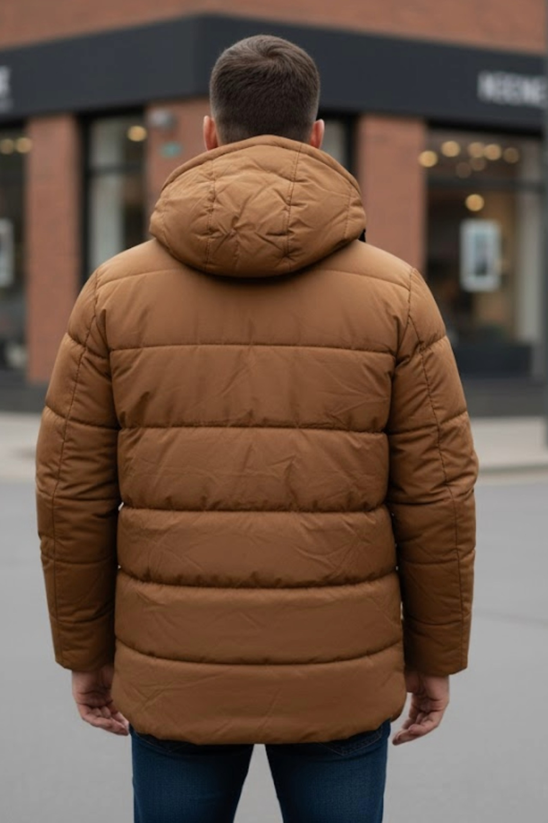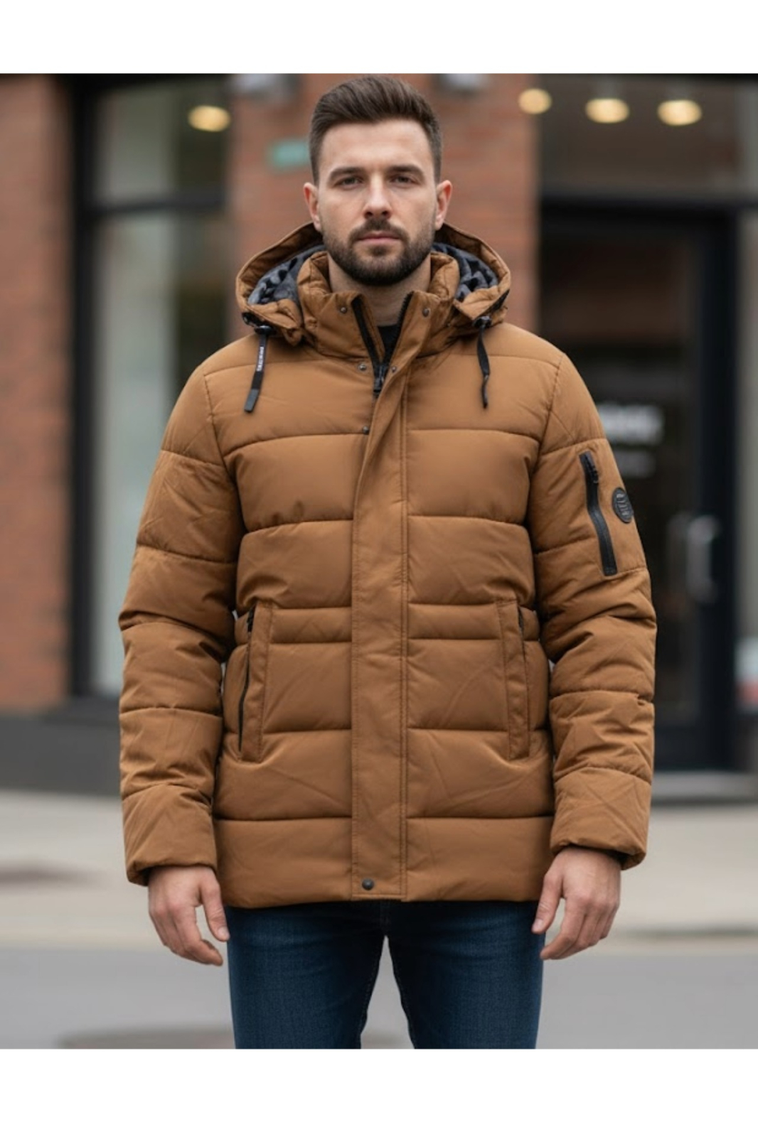 Geaca matlasata de iarna pentru barbati, calduroasa, cu gluga detasabila 7187 maro