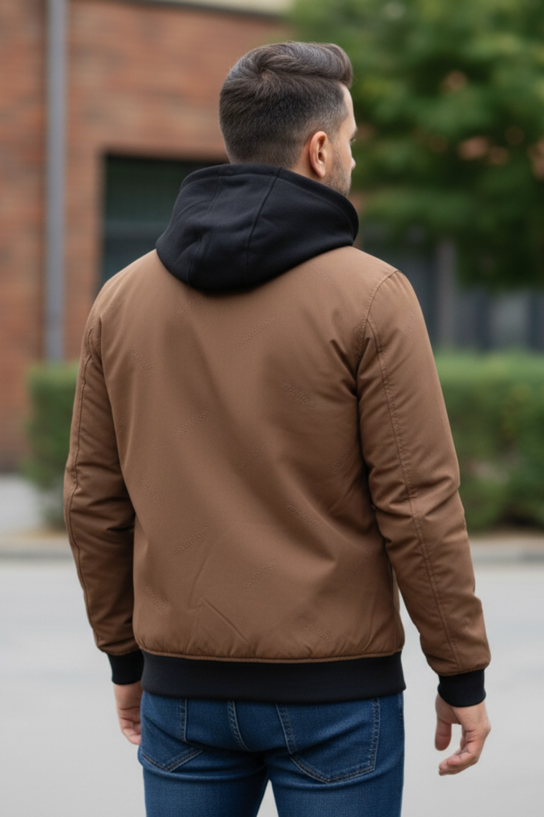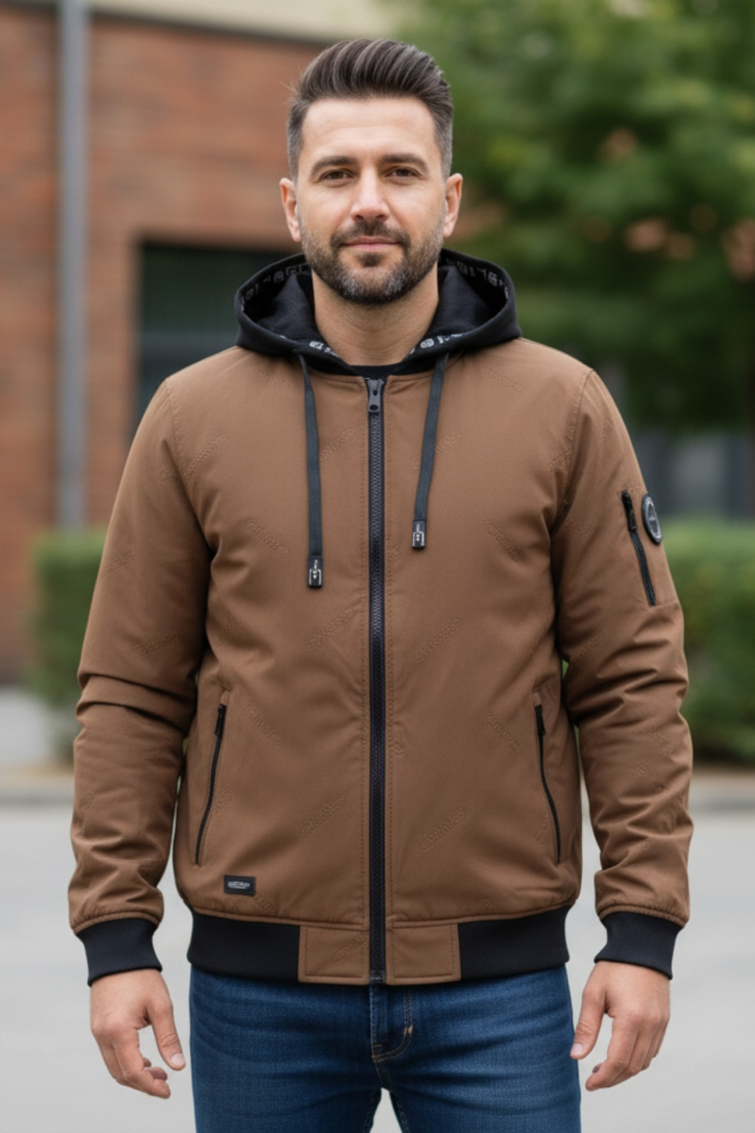 Geaca pentru Barbati marime mare impermeabila, cu gluga detasabila, buzunare, cu fermoar, maro inchis 8403