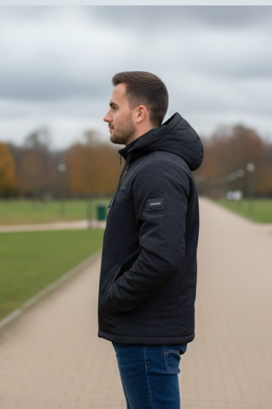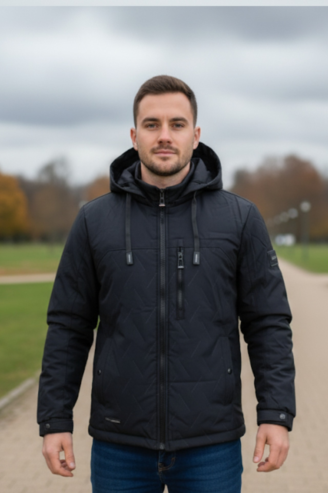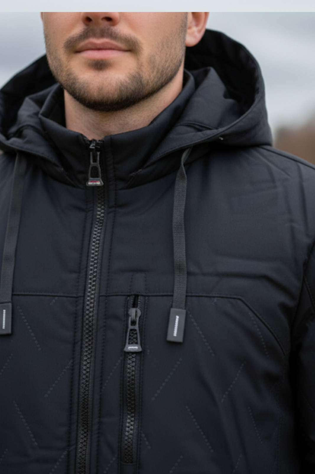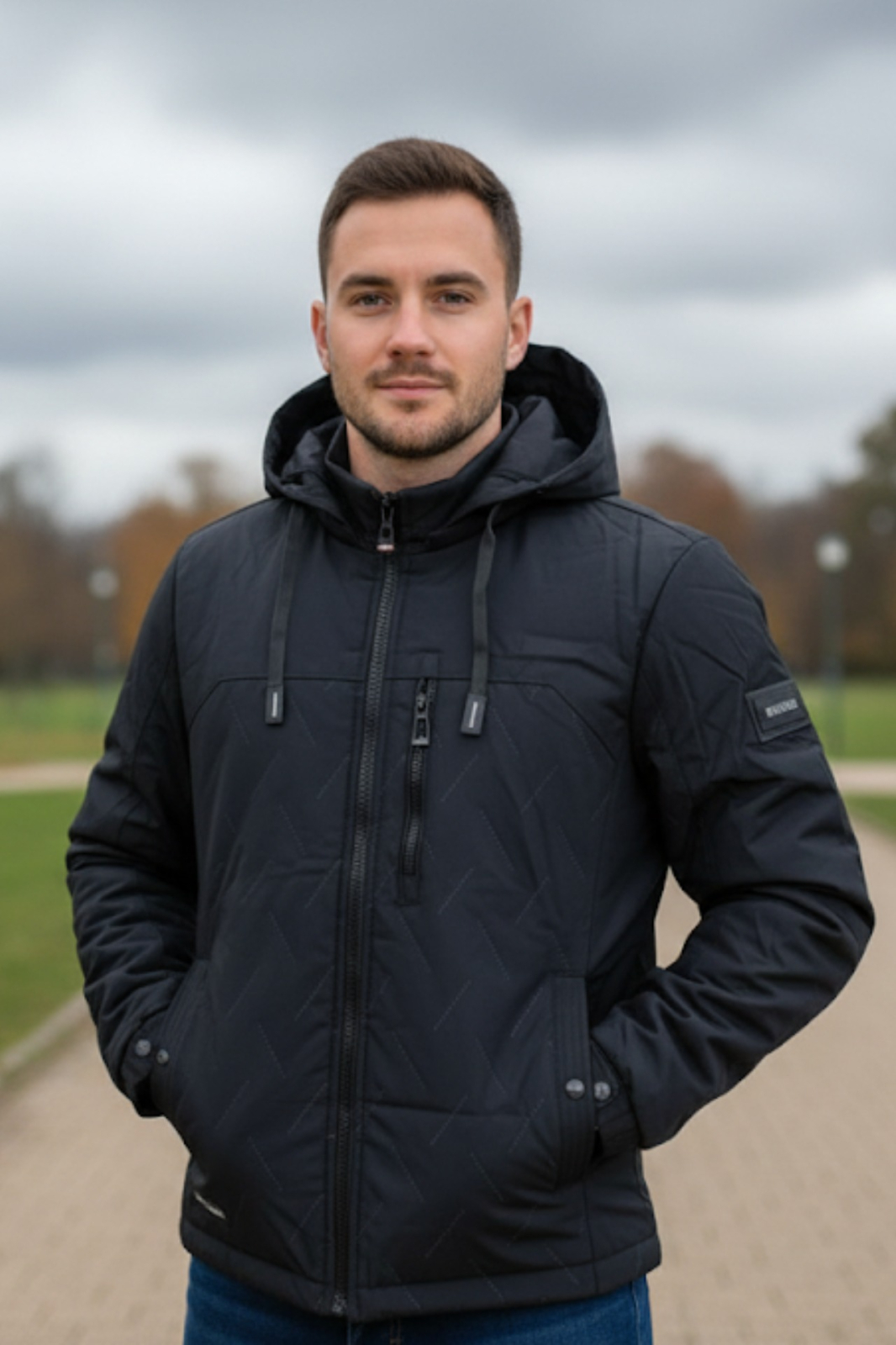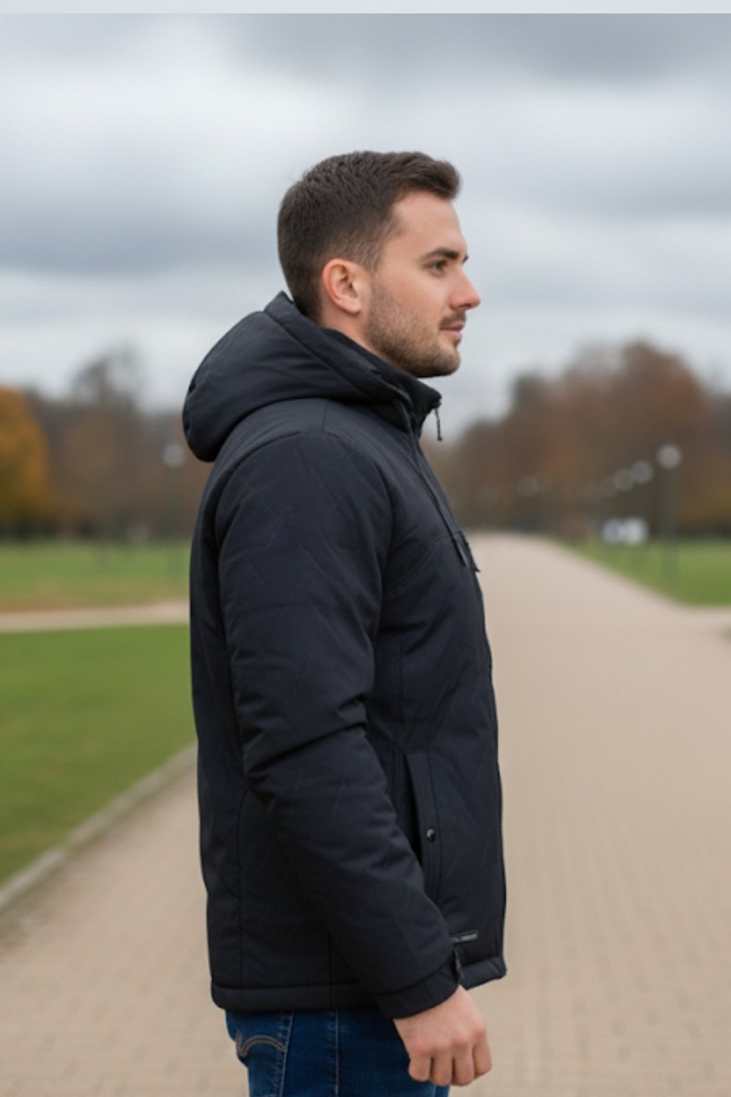Geaca pentru Barbati impermeabila, cu gluga detasabila, buzunare, cu fermoar, negru 8408-1