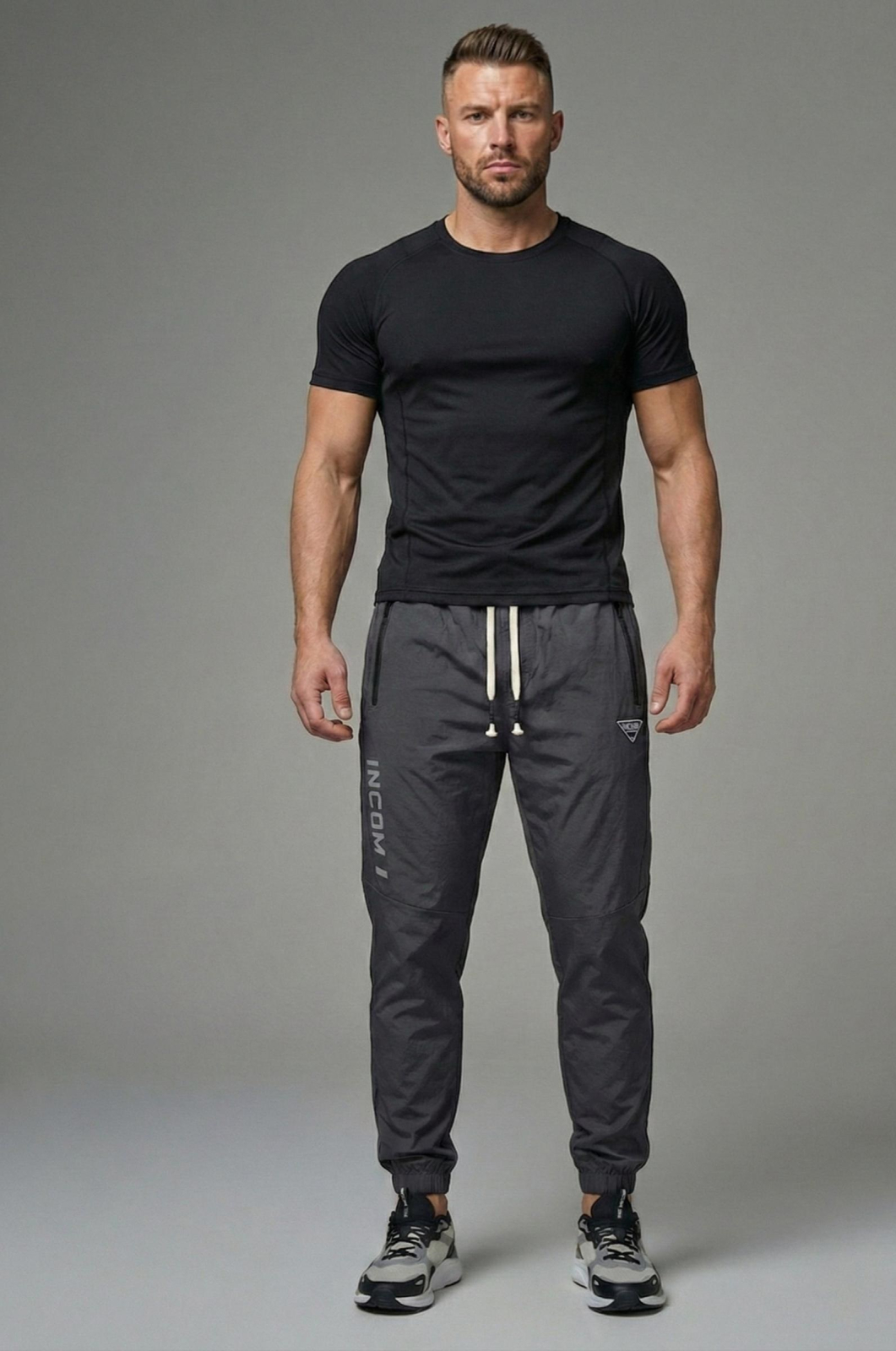 Descriere Generala: Descopera confortul si stilul urban cu noii pantaloni de trening tip jogger, modelul INCOM. Ideali atat pentru activitati sportive, cat si pentru o tinuta casual de zi cu zi, acesti pantaloni sunt fabricati dintr-un material rezistent care asigura libertate de miscare. Designul modern, completat de imprimeul lateral, ofera un look actual si dinamic.