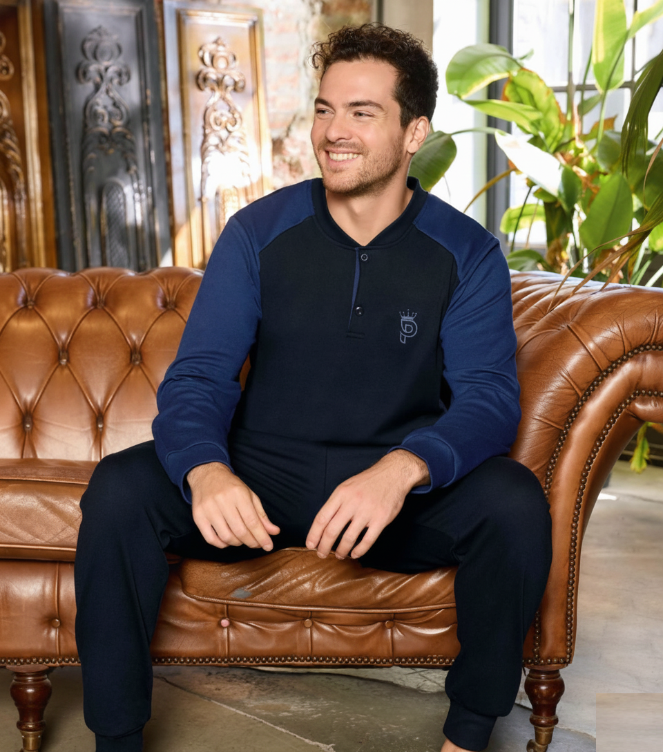 Pijama lunga bumbac interlock pentru barbati, negru/bleumarin 5902