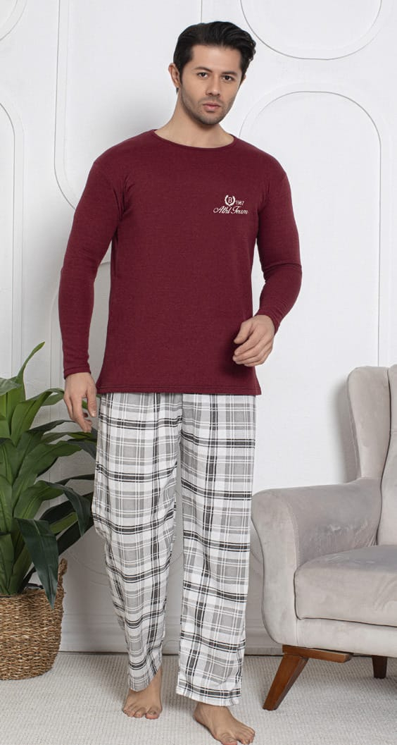 Pijama lunga bumbac pentru barbati, batal marime mare visiniu 16233
