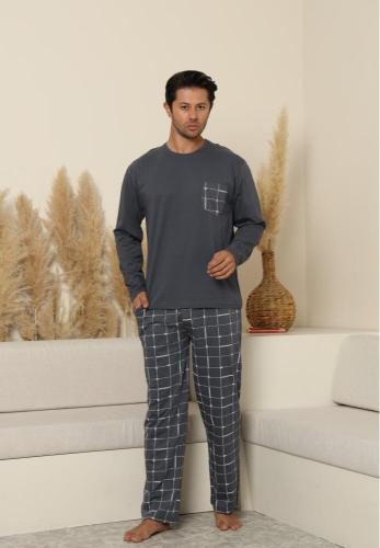 Pijama lunga bumbac pentru barbati cu buzunare la pantaloni, gri 70071