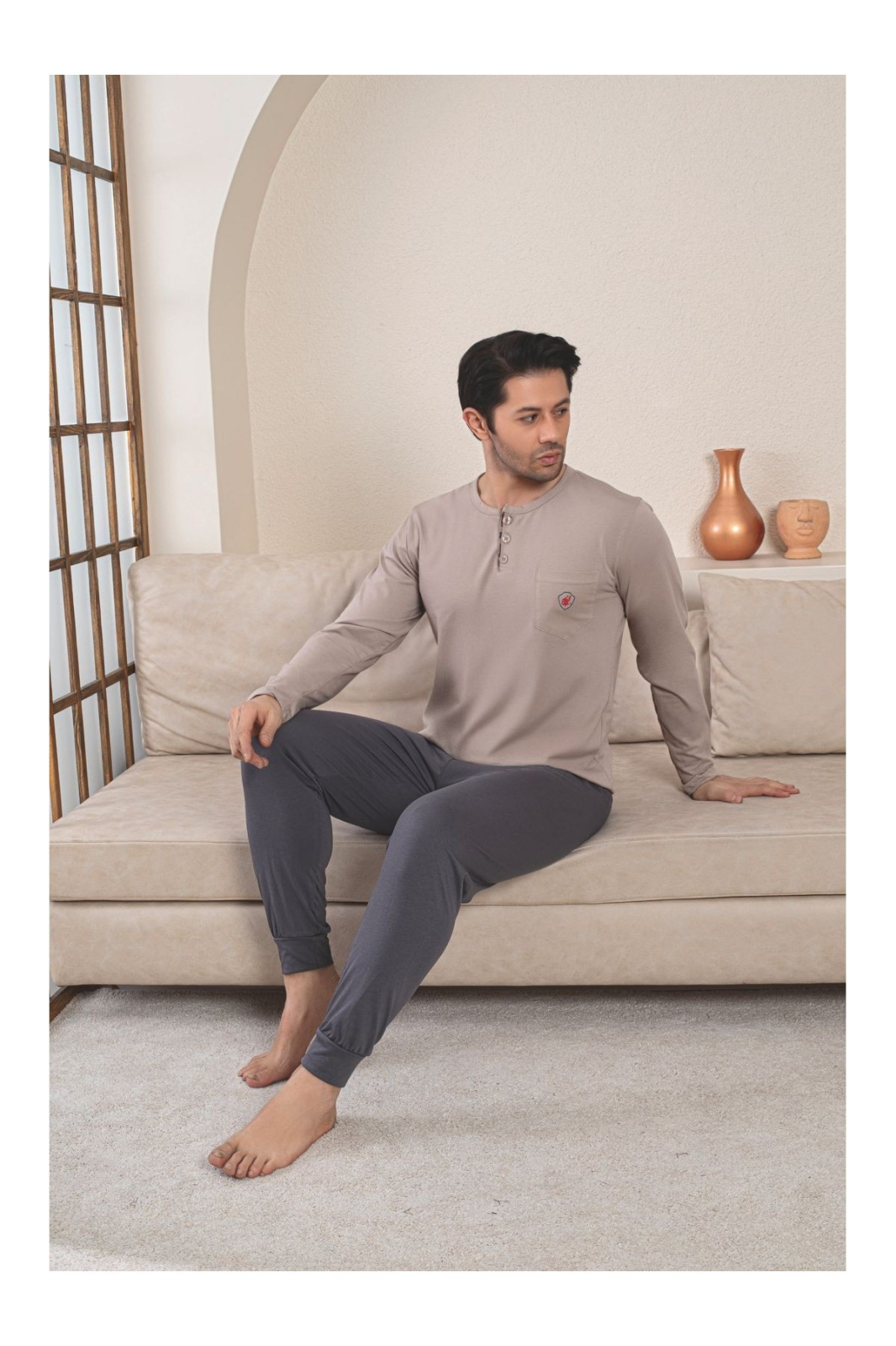 Pijama lunga bumbac penye pentru barbati, bej 1057
