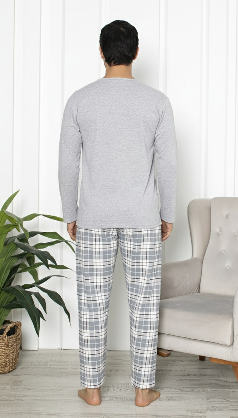 Pijama lunga bumbac vatuit pentru barbati gri 15536