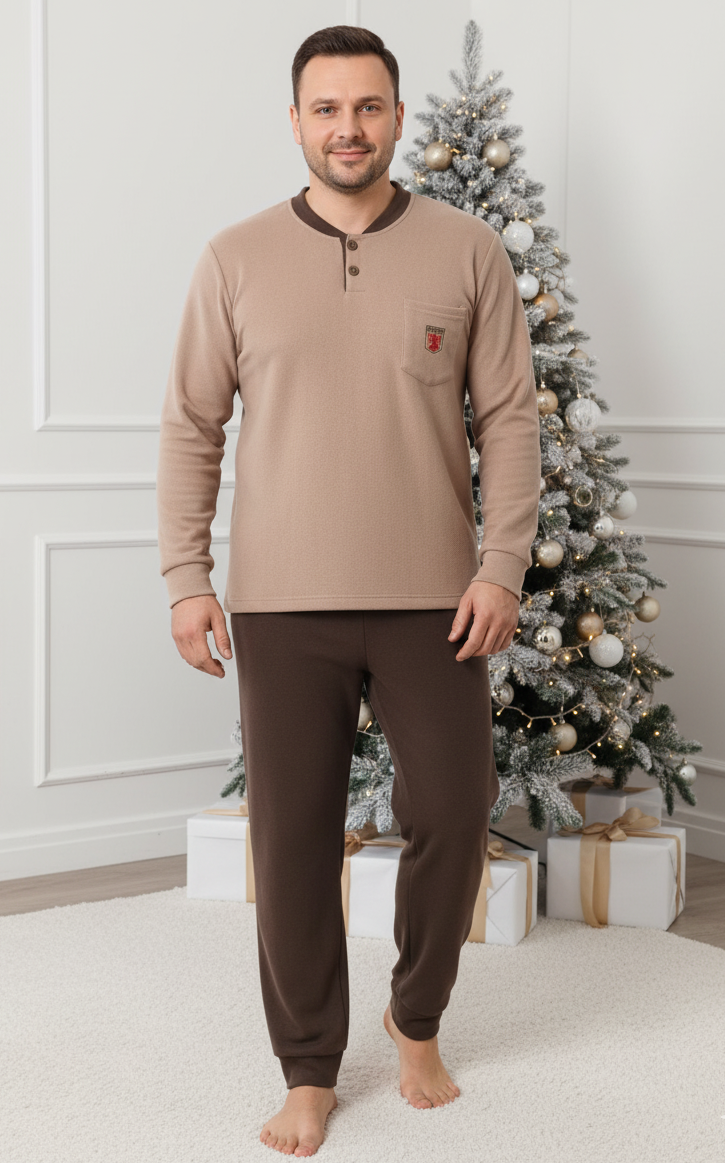 Pijama barbati cocolino polar, material fin, delicat si moale, maro 86 Craciun