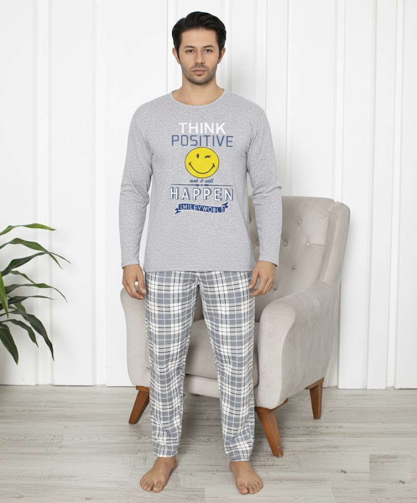 Pijama lunga bumbac vatuit pentru barbati gri 15570