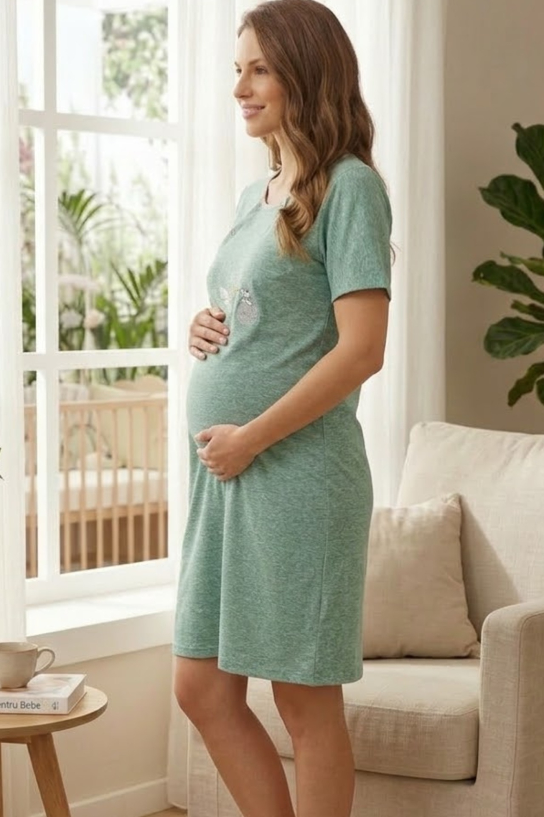 Conceputa cu gandul la nevoile viitoarelor si proaspetelor mamici, aceasta camasa de noapte combina perfect functionalitatea cu un design plin de duiosie.Materialul moale si respirabil, cel mai probabil din bumbac de calitate, mangaie pielea si asigura un somn odihnitor, esential in perioada maternitatii.