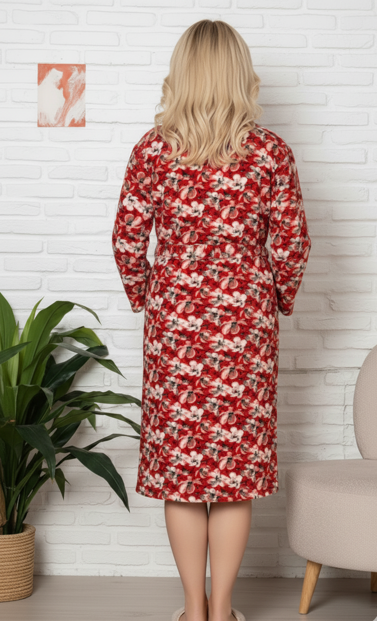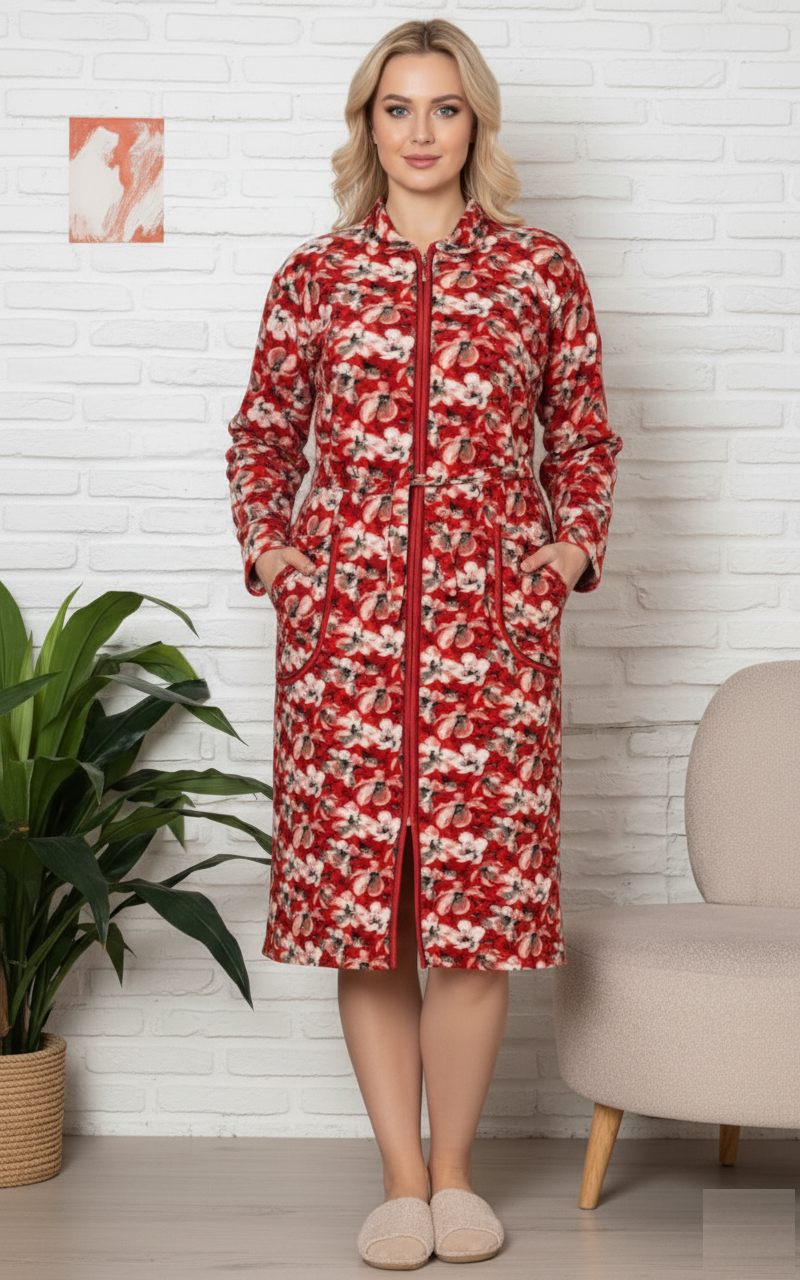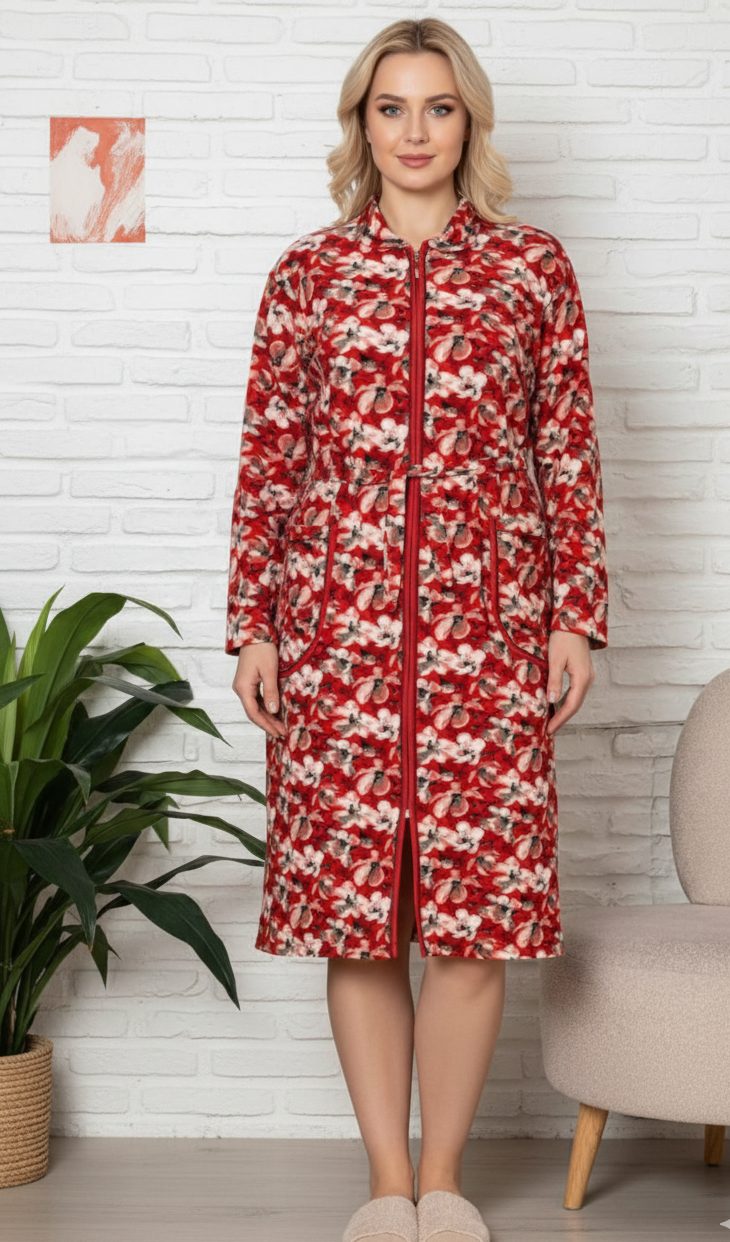 Capot de casa pentru femei maneca lunga si buzunare, cordon in talie 8011