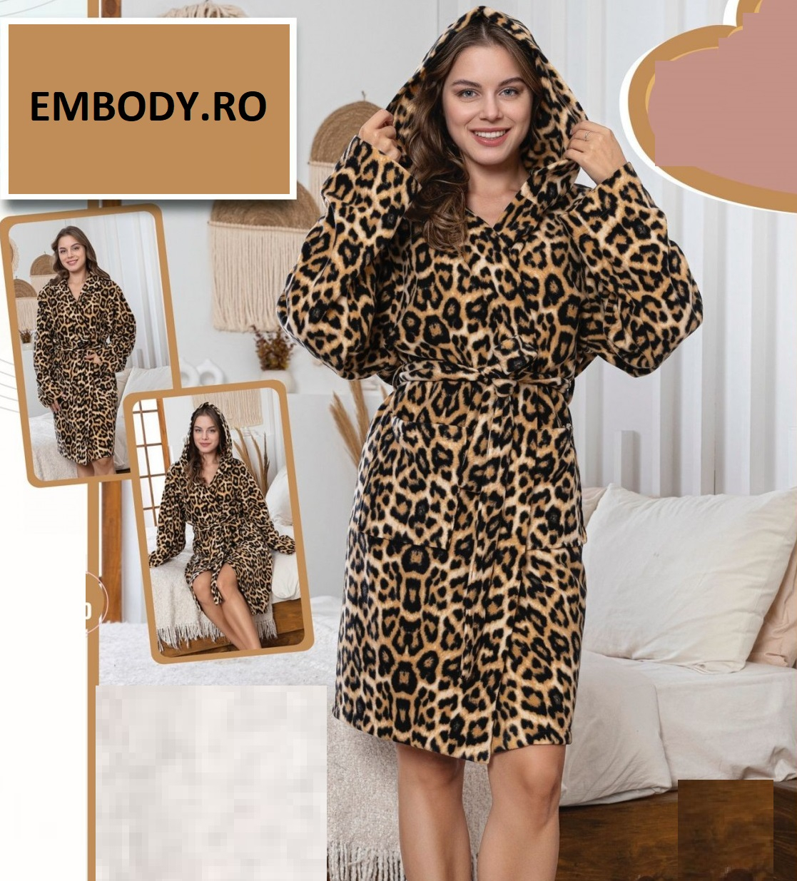 Capot Halat dama cocolino soft-polar, pufos, imprimeu animal print maro 200