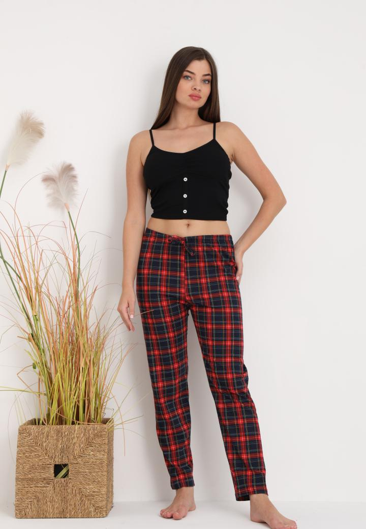 Pantaloni de Pijama Dama Bumbac imprimeu carouri visniu/bleumarin