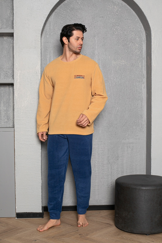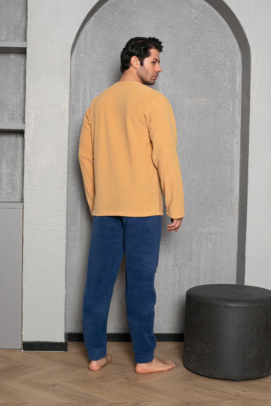 Pijama barbati cocolino polar, material fin, delicat si moale, bleumarin/galben 1091