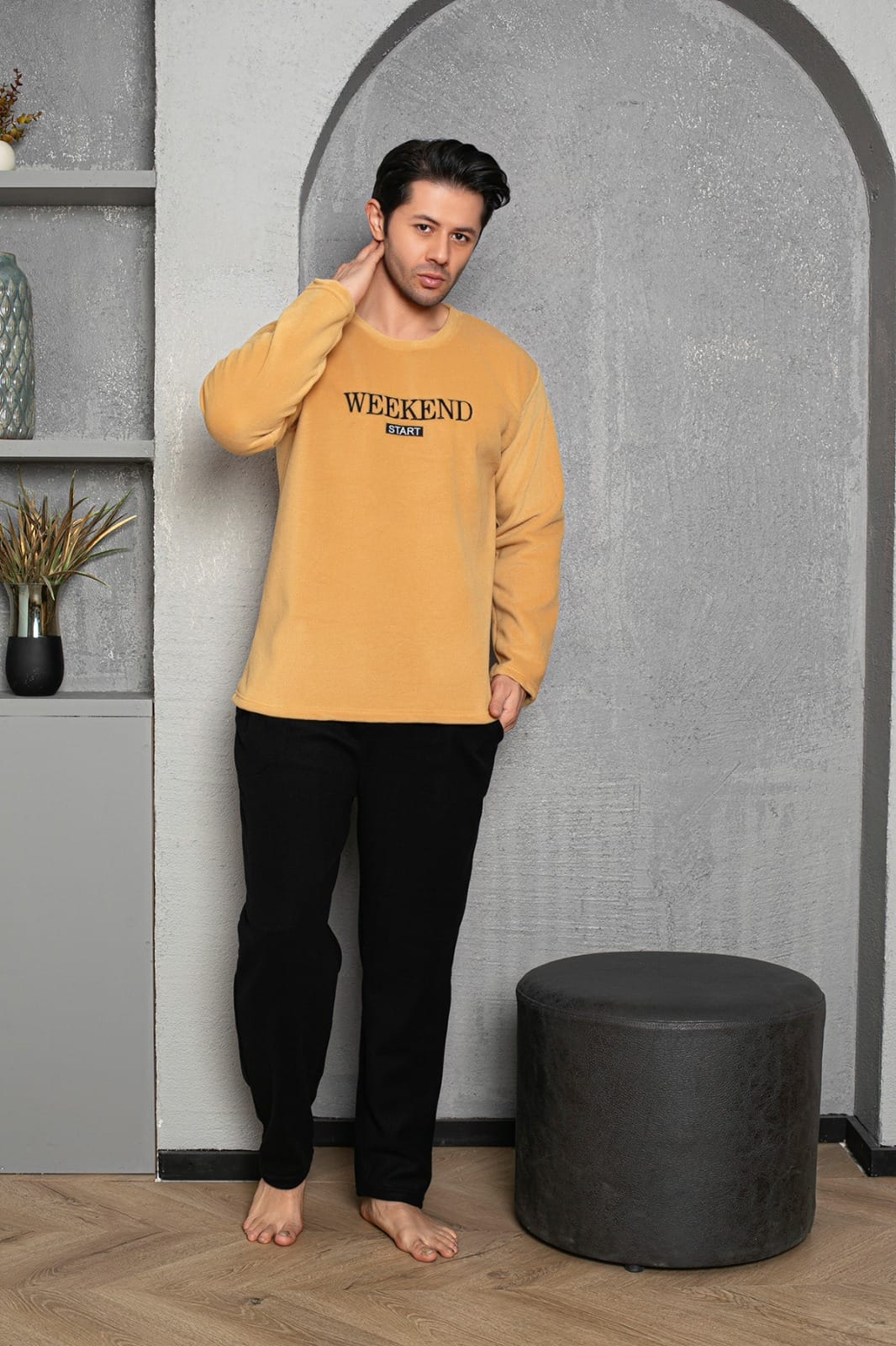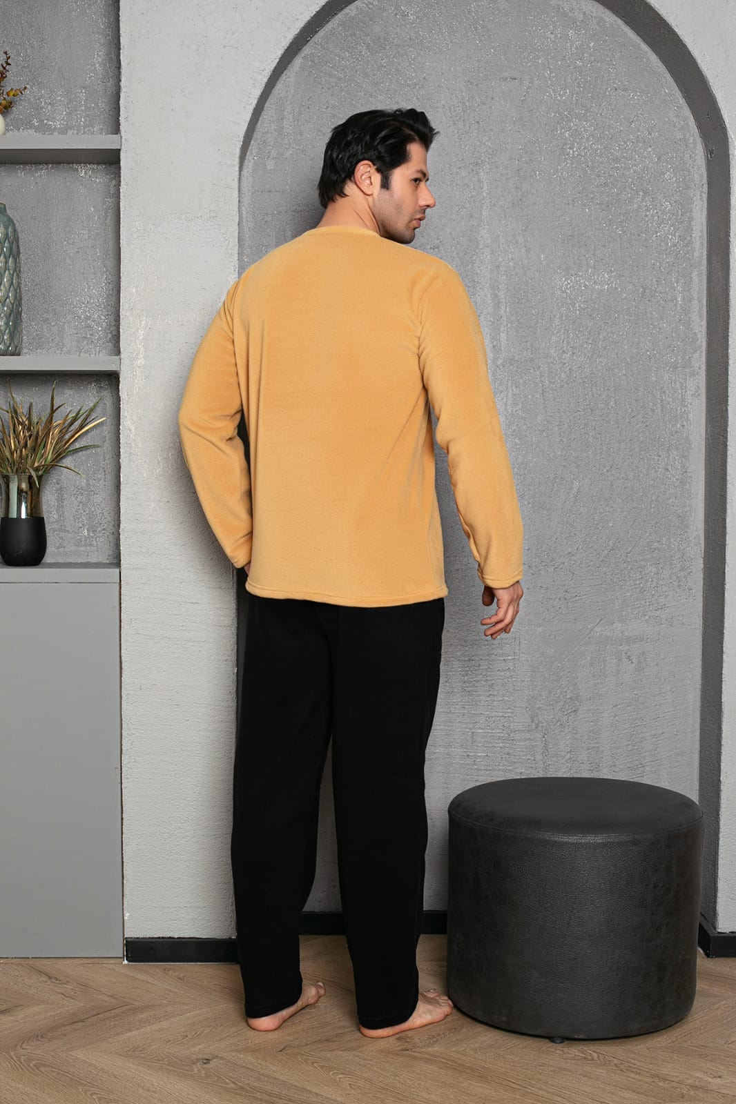 Pijama barbati cocolino polar, material fin, delicat si moale, negru/galben 478