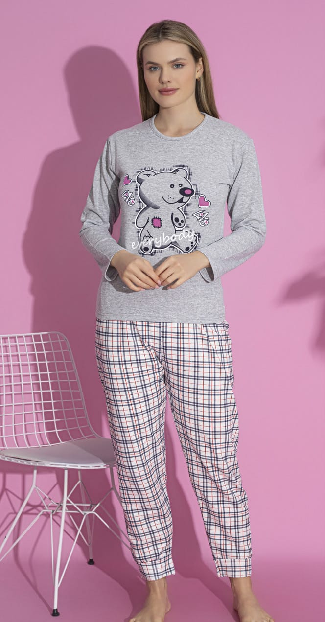Pijama bumbac vatuit de Dama, Set cu Bluza si Pantaloni lungi gri 15418