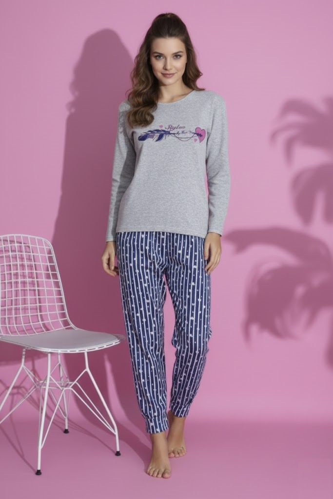 Pijama bumbac vatuit de Dama, Set cu Bluza si Pantaloni lungi gri 15427
