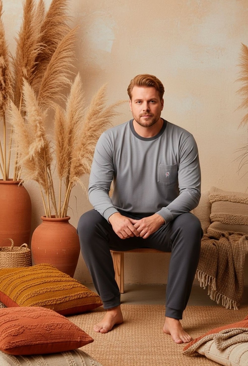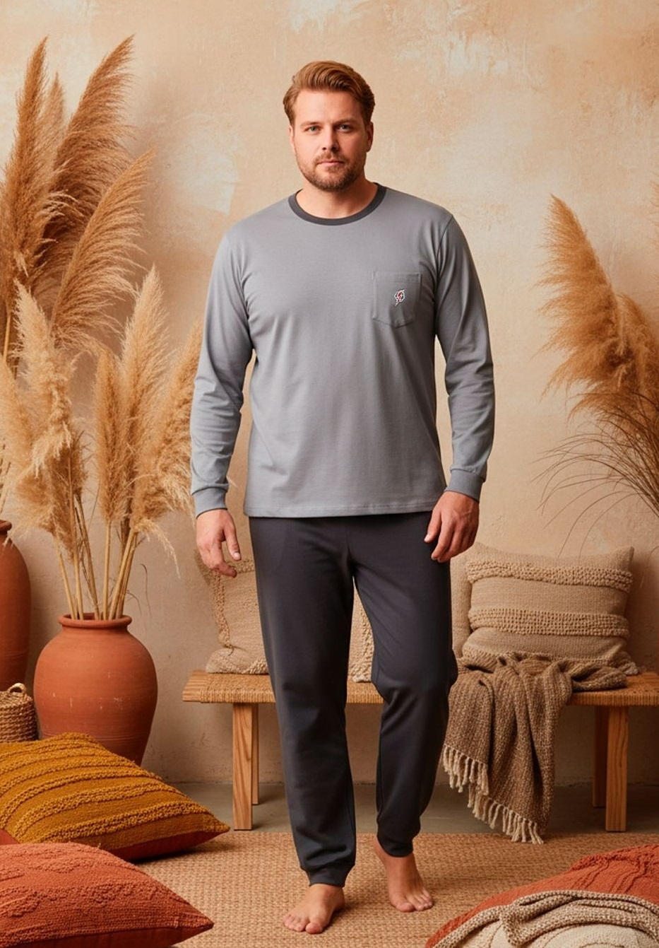 Pijama lunga bumbac interlock pentru barbati, marime mare, gri 3012