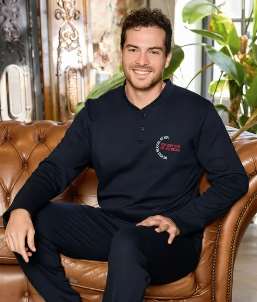 Descopera combinatia perfecta intre confort si stil cu aceasta pijama moderna pentru barbati. Ideala atat pentru un somn odihnitor, cat si pentru momente de relaxare acasa, acest set este conceput pentru a oferi o senzatie placuta pe tot parcursul purtarii.