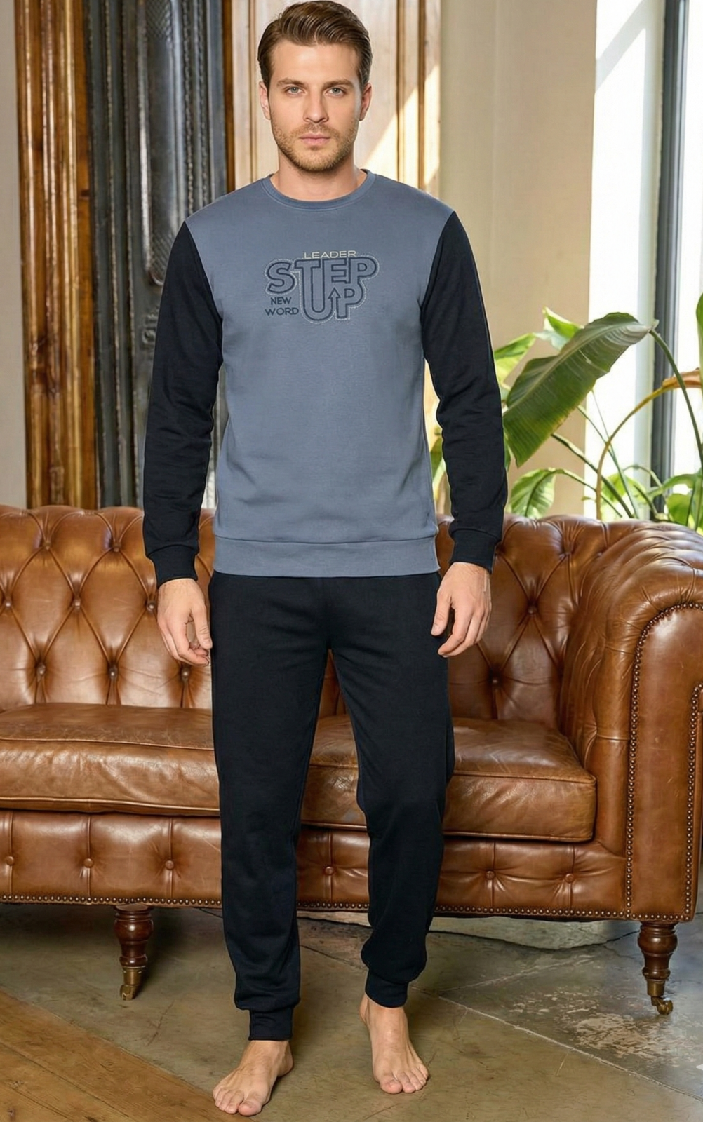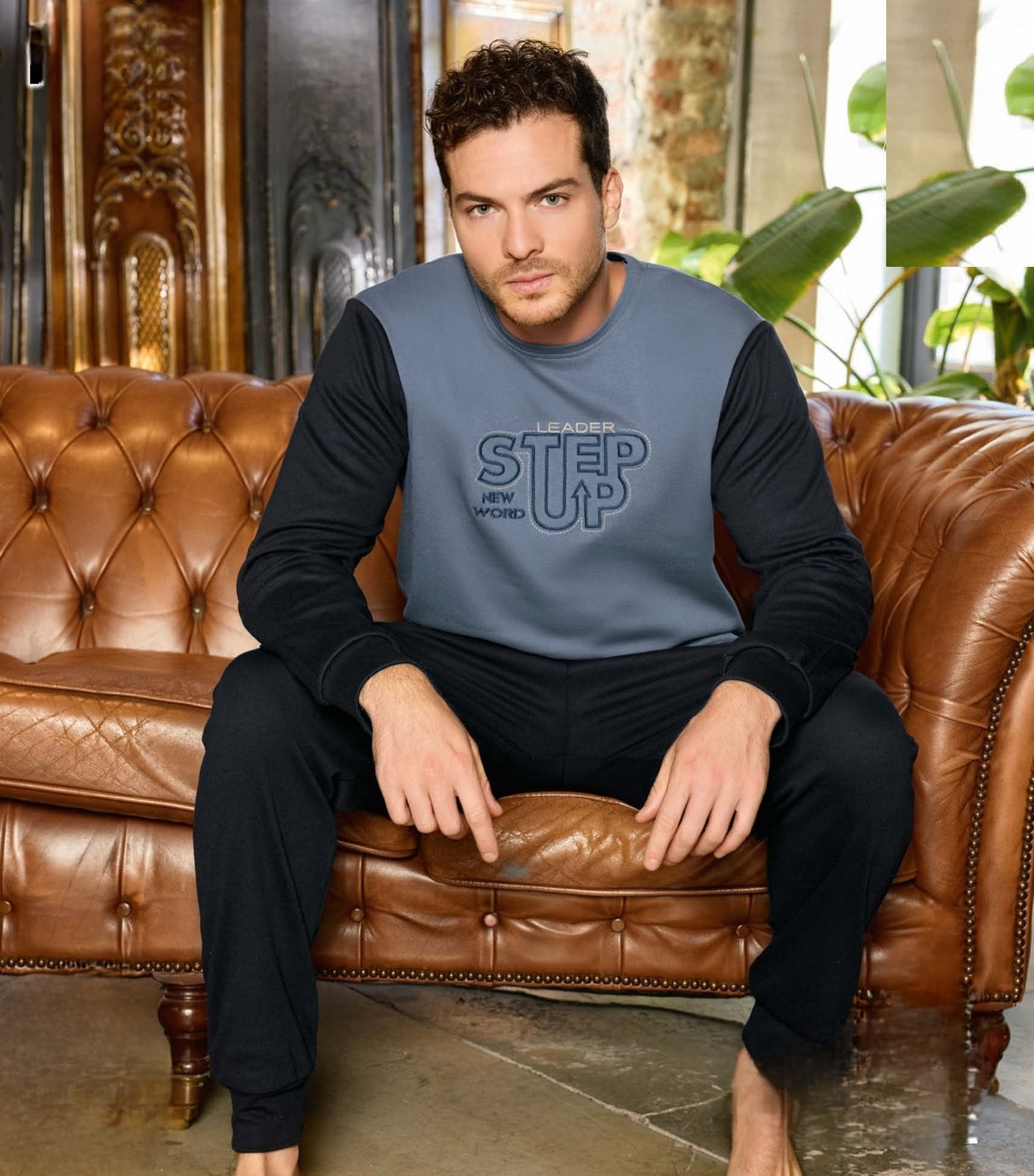 Pijama lunga bumbac interlock pentru barbati, negru/gri 5904