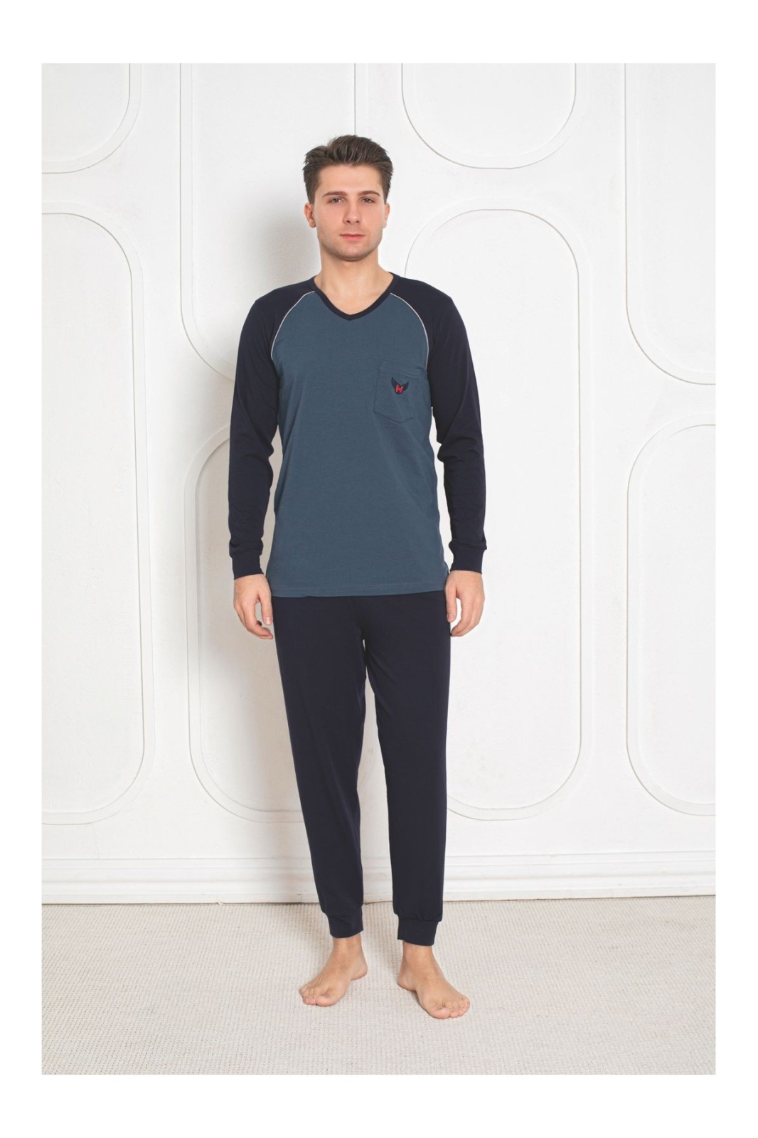 Pijama lunga bumbac lycra pentru barbati, bleumarin 906