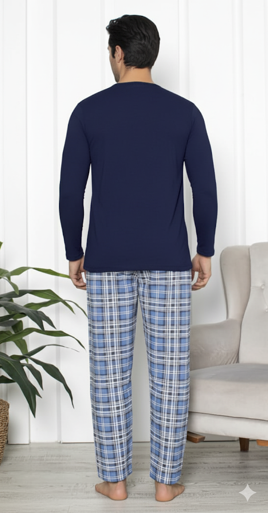 Pijama lunga bumbac pentru barbati, batal marime mare bleumarin 16233