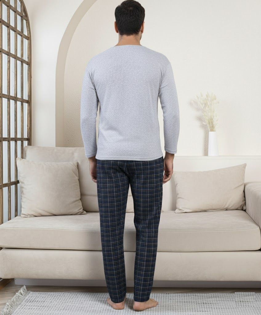 Descopera combinatia perfecta intre confort si stil cu aceasta pijama moderna pentru barbati. Ideala atat pentru un somn odihnitor, cat si pentru momente de relaxare acasa, acest set este conceput pentru a oferi o senzatie placuta pe tot parcursul purtarii.