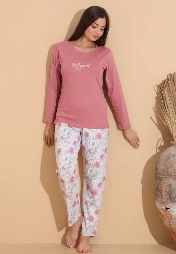 Pijama bumbac de Dama Confortabila, Set cu Bluza si Pantaloni lungi, roz 1011