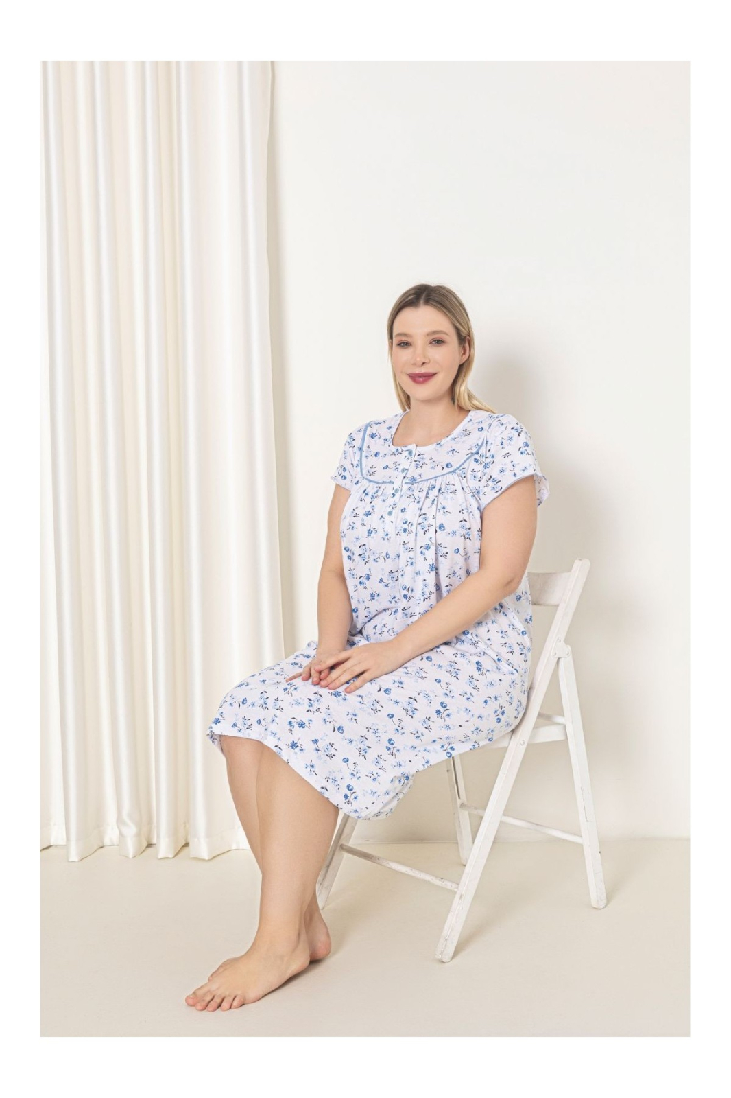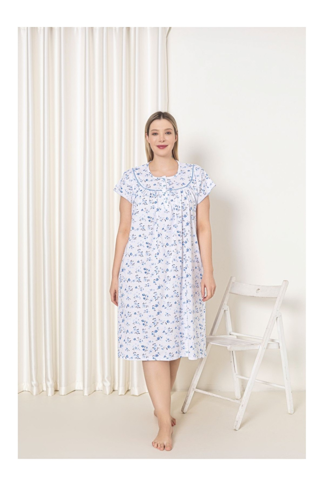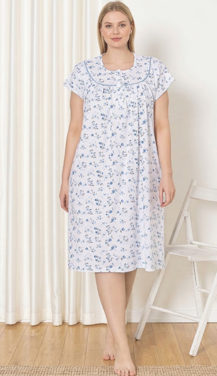 Camasa de noapte dama maneca scurta, croiala lejera, cu imprimeu floral si nasturi 7000