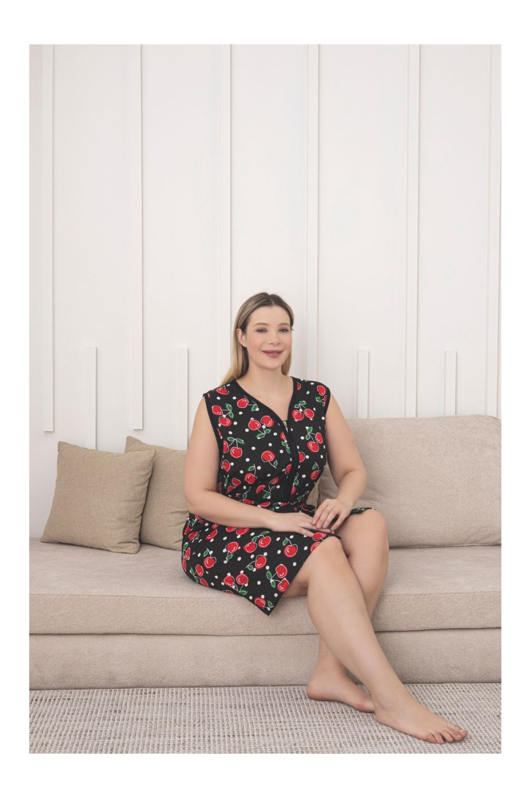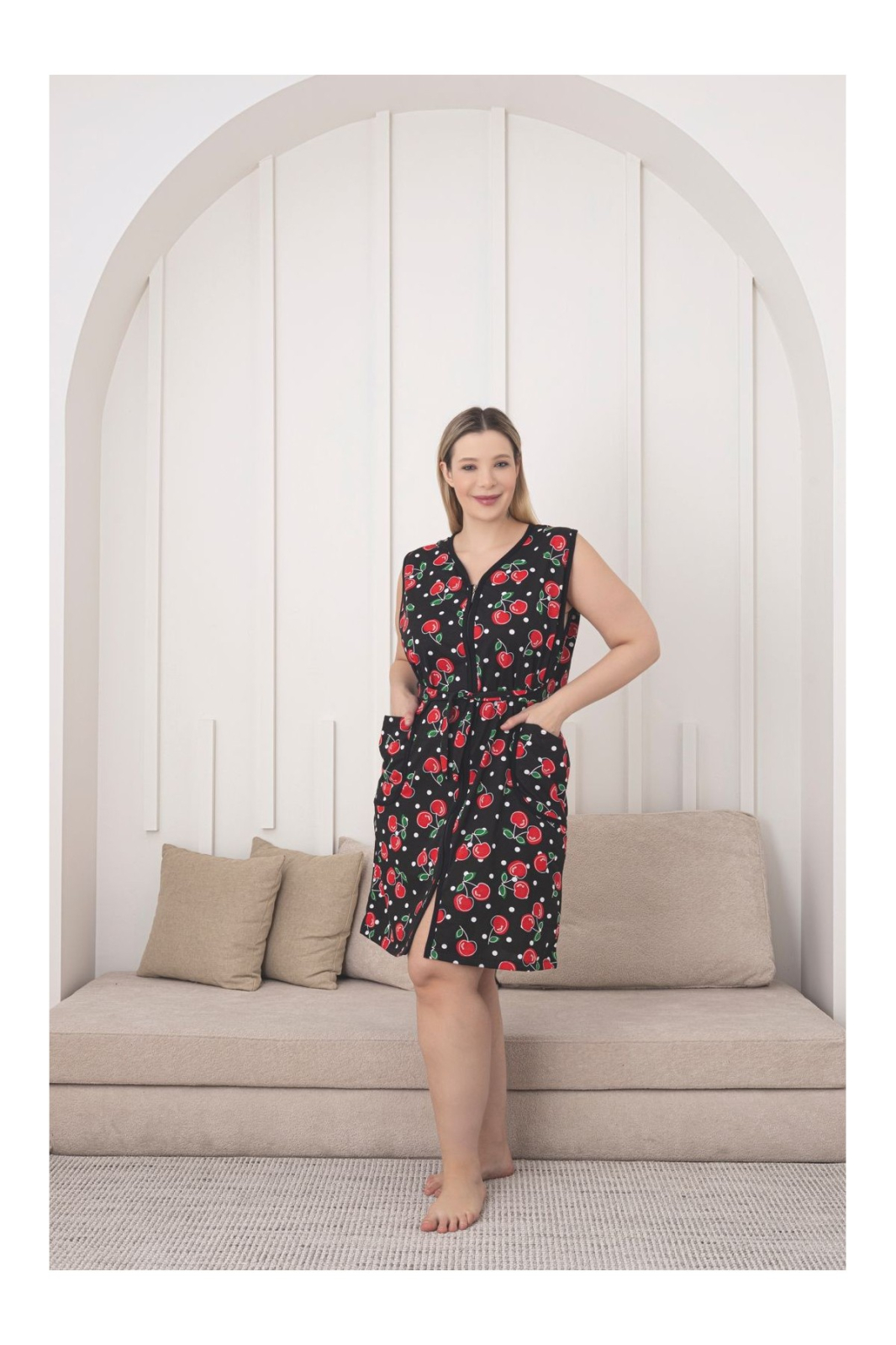 Capot de Casa tip Halat dama, cu imprimeu Cherry, fermoar si buzunare 8037
