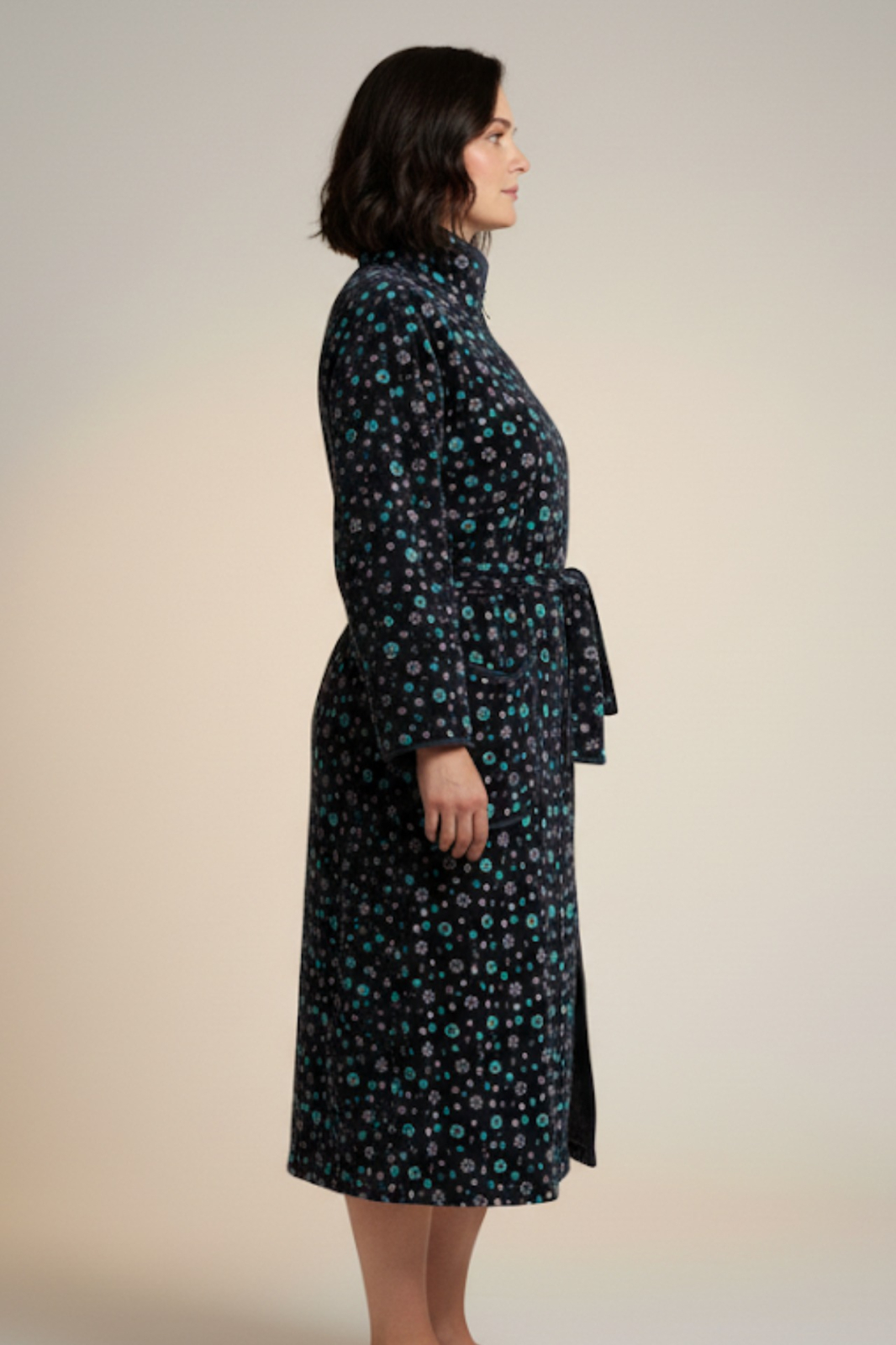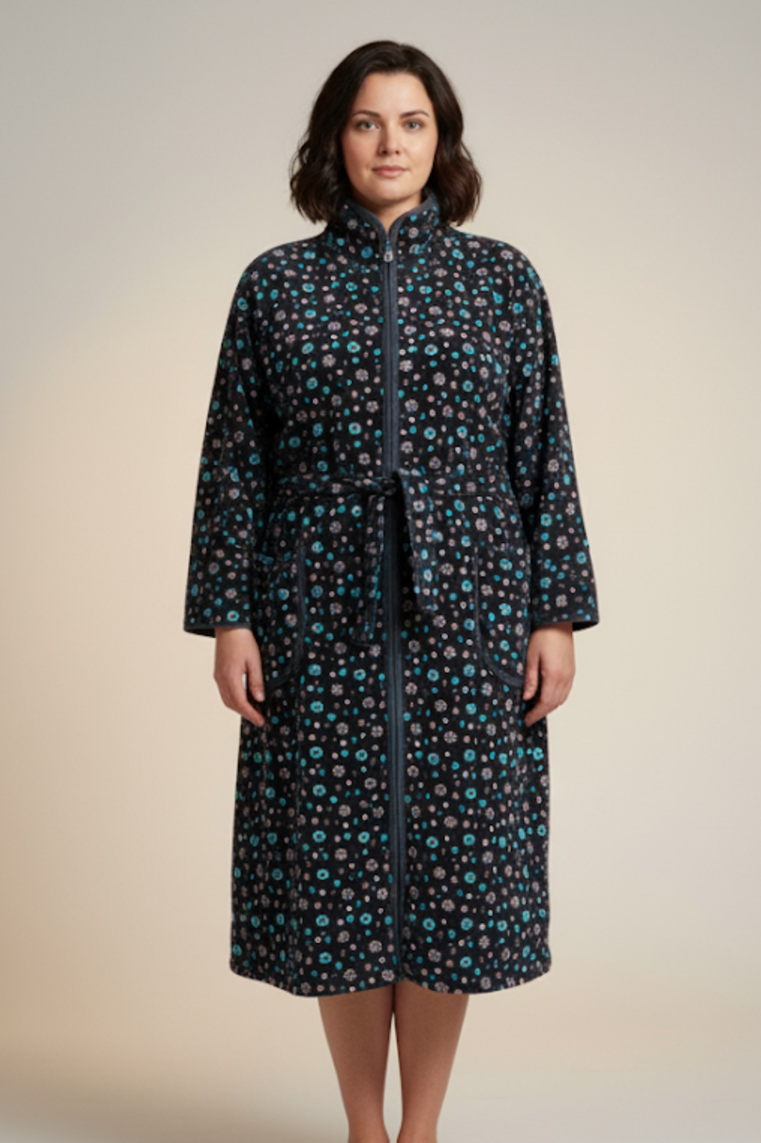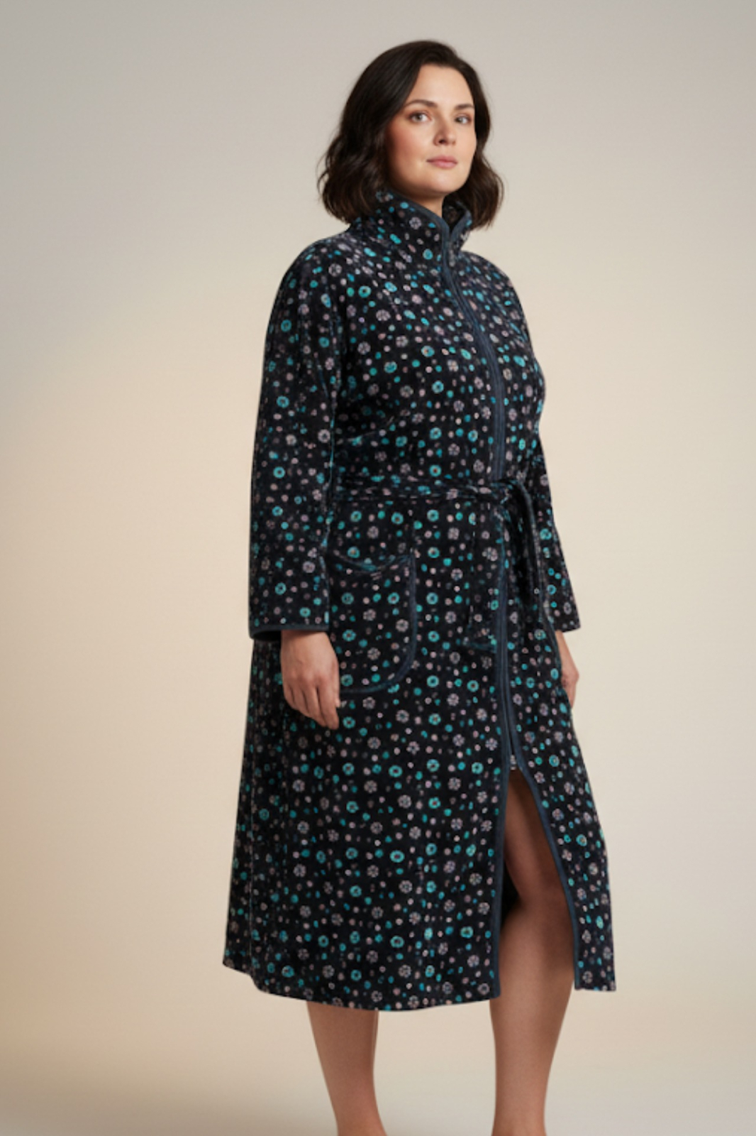 Imbratisati confortul si stilul in zilele racoroase cu acest superb capot de casa, special conceput pentru doamnele cu forme generoase. Realizat dintr-o catifea moale si calduroasa, acest halat va va invalui intr-o senzatie placuta de caldura si rasfat, fiind perfect pentru diminetile de weekend sau serile de relaxare.