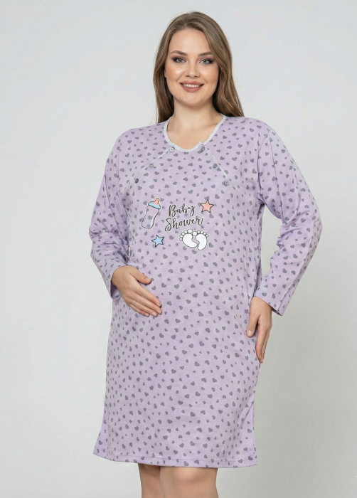 Camasa de Noapte pentru Gravide bumbac, deschidere pentru Alaptare mov marimi mari