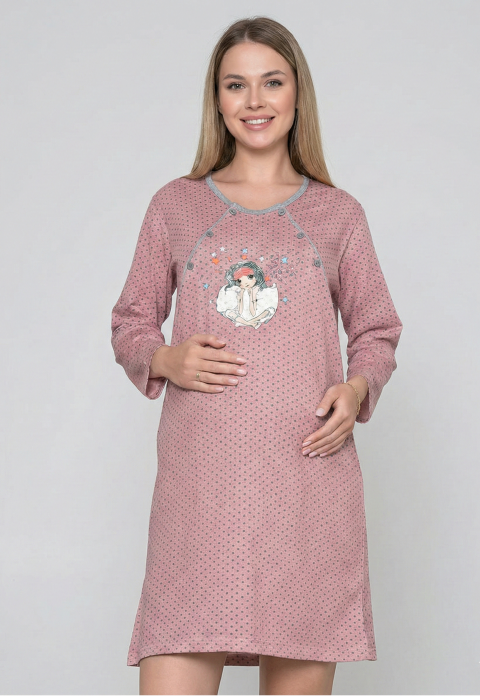 Camasa de Noapte pentru Gravide bumbac, deschidere pentru Alaptare roz prafuit 3051